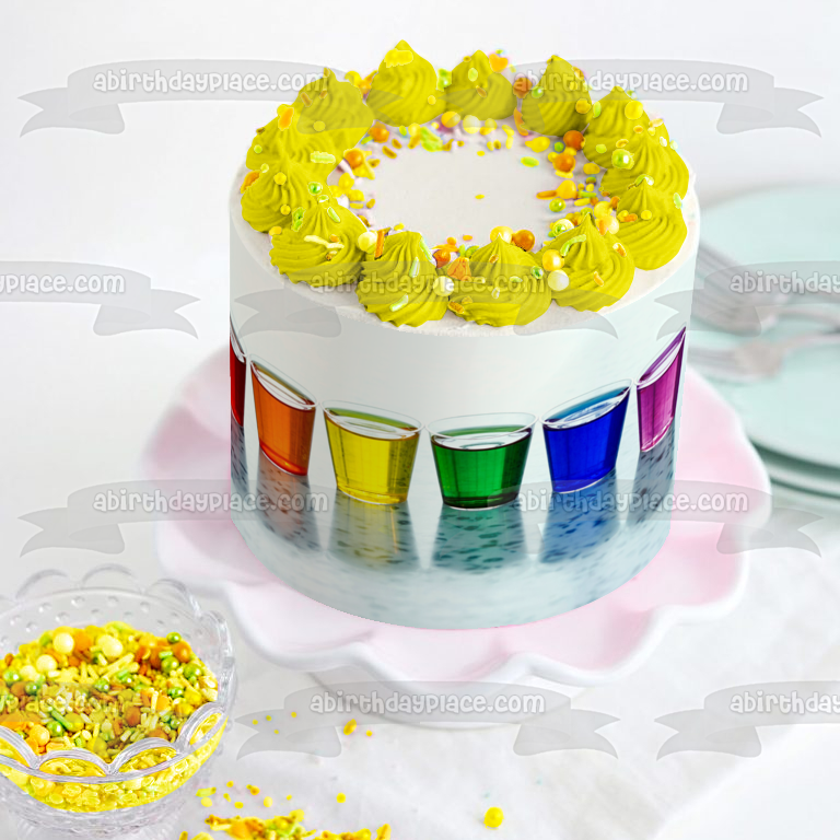 Decorate your Cake with this Rainbow Colored Shot Glasses themed Edible Cake Topper Image!