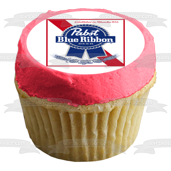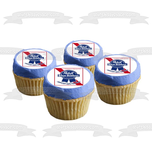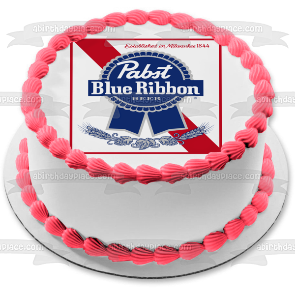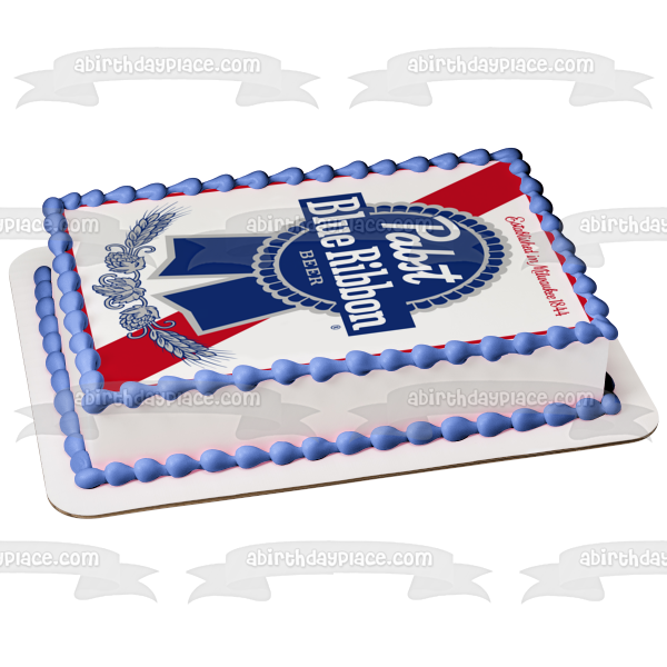 Decorate your Cake with this Pabst Blue Ribbon themed Edible Cake Topper Image featuring their Logo!