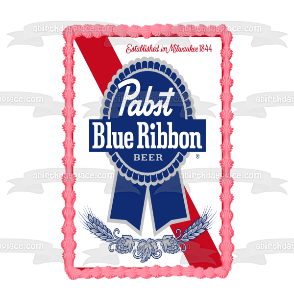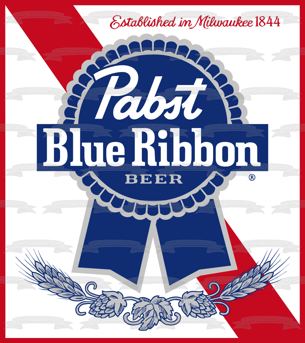 Pabst Blue Ribbon Beer Logo Edible Cake Topper Image ABPID56160