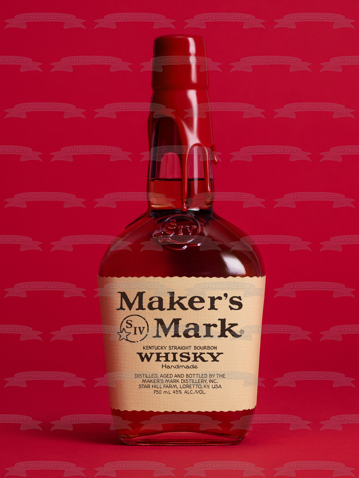 Decorate your Cake with this Maker's Mark Whisky Bottle themed Edible Cake Topper Image!