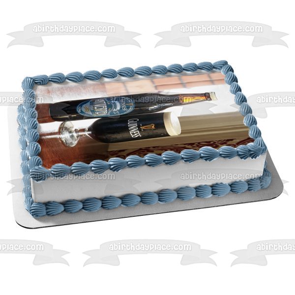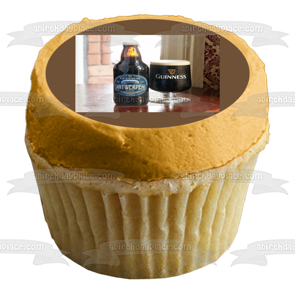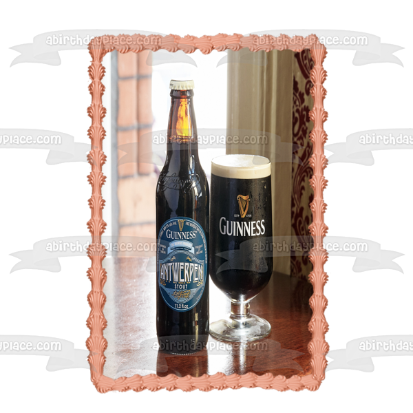 Decorate your Cake with this Guinness Antwerpen Stout themed Edible Cake Topper Image featuring their Beer Bottle and Glass!