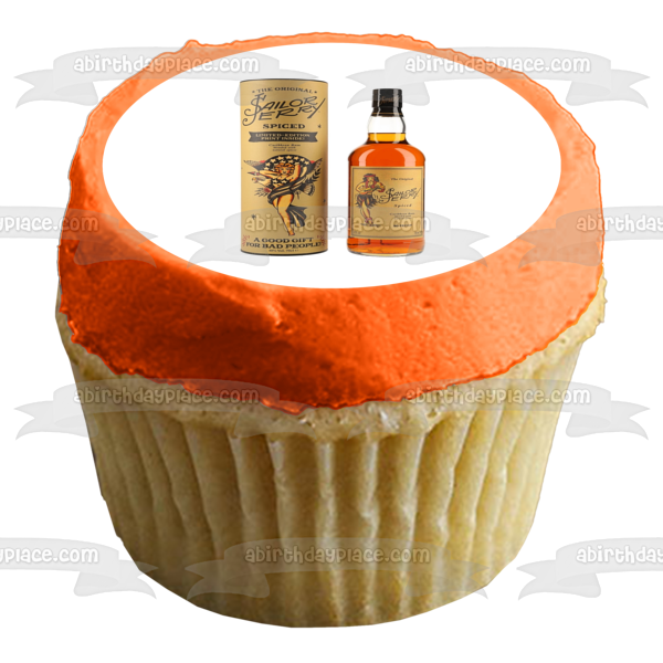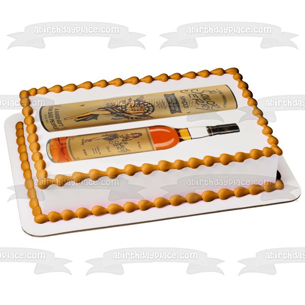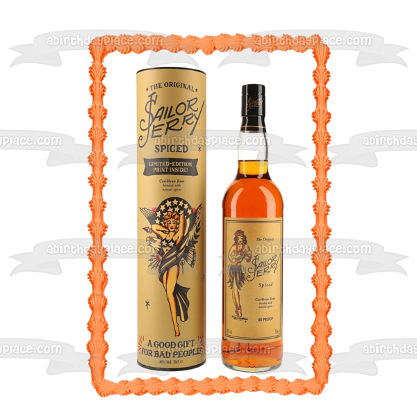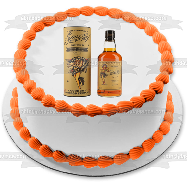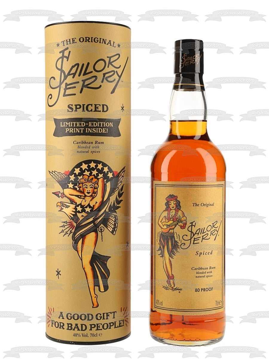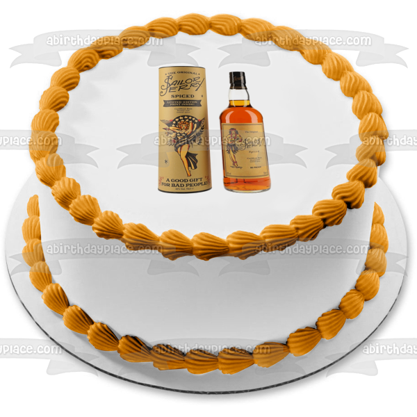 Decorate your Cake with this Sailor Jerry Spiced Caribbean Rum themed Edible Cake Topper Image featuring thier Bottle and Box!