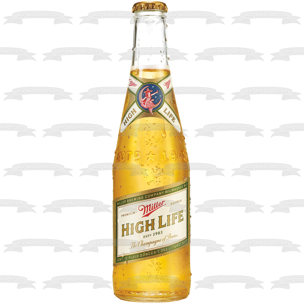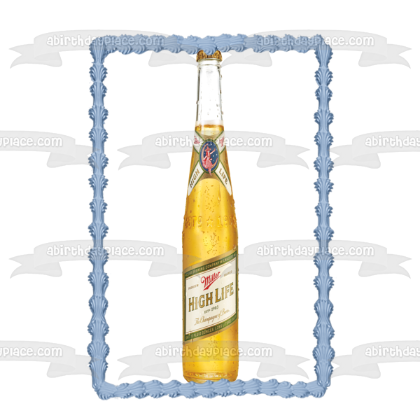 Decorate your Cake with this Miller High Life themed Edible Cake Topper Image featuring their Beer Bottle!