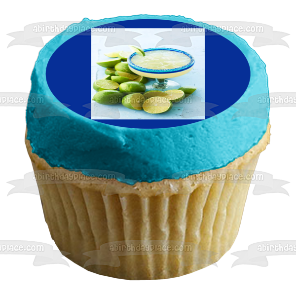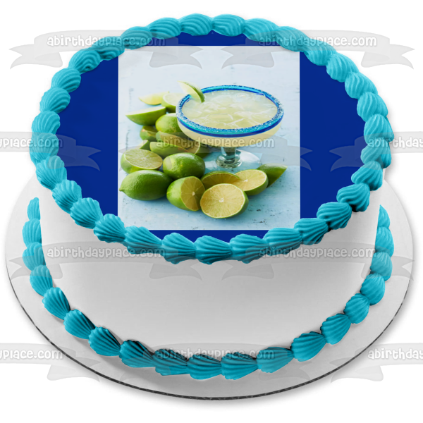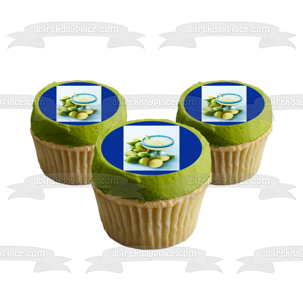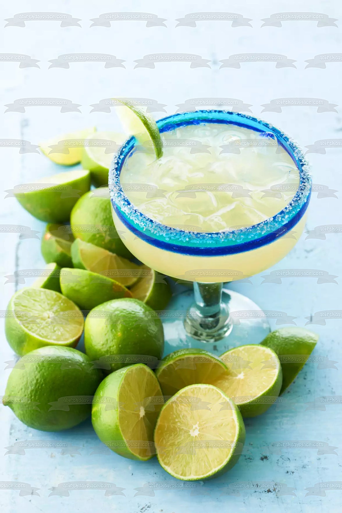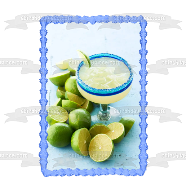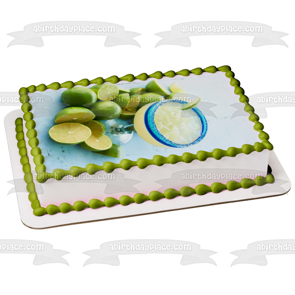 Decorate your Cake with this Margarita in a Glass themed Edible Cake Topper Image featuring Limes!