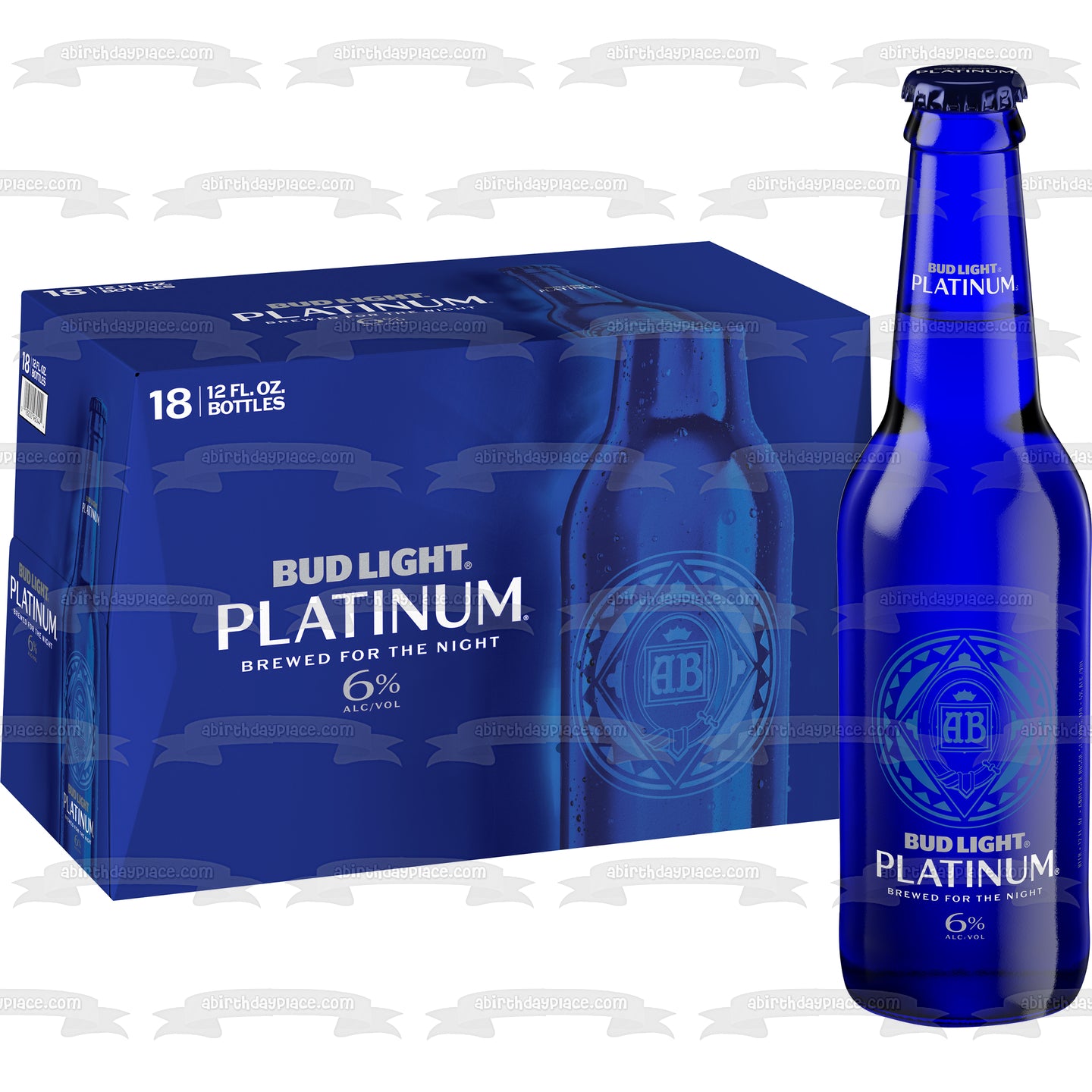 Decorate your Cake with this Bud Light Platinum themed Edible Cake Topper Image featuring an 18 Pack of Bottles!