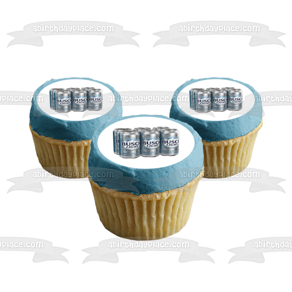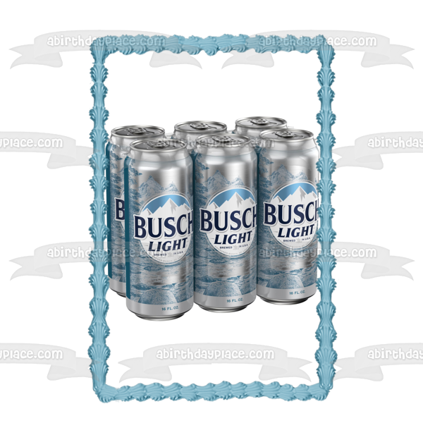 Decorate your Cake with this Busch Light themed Edible Cake Topper Image featuring a 6 Pack ofCans!