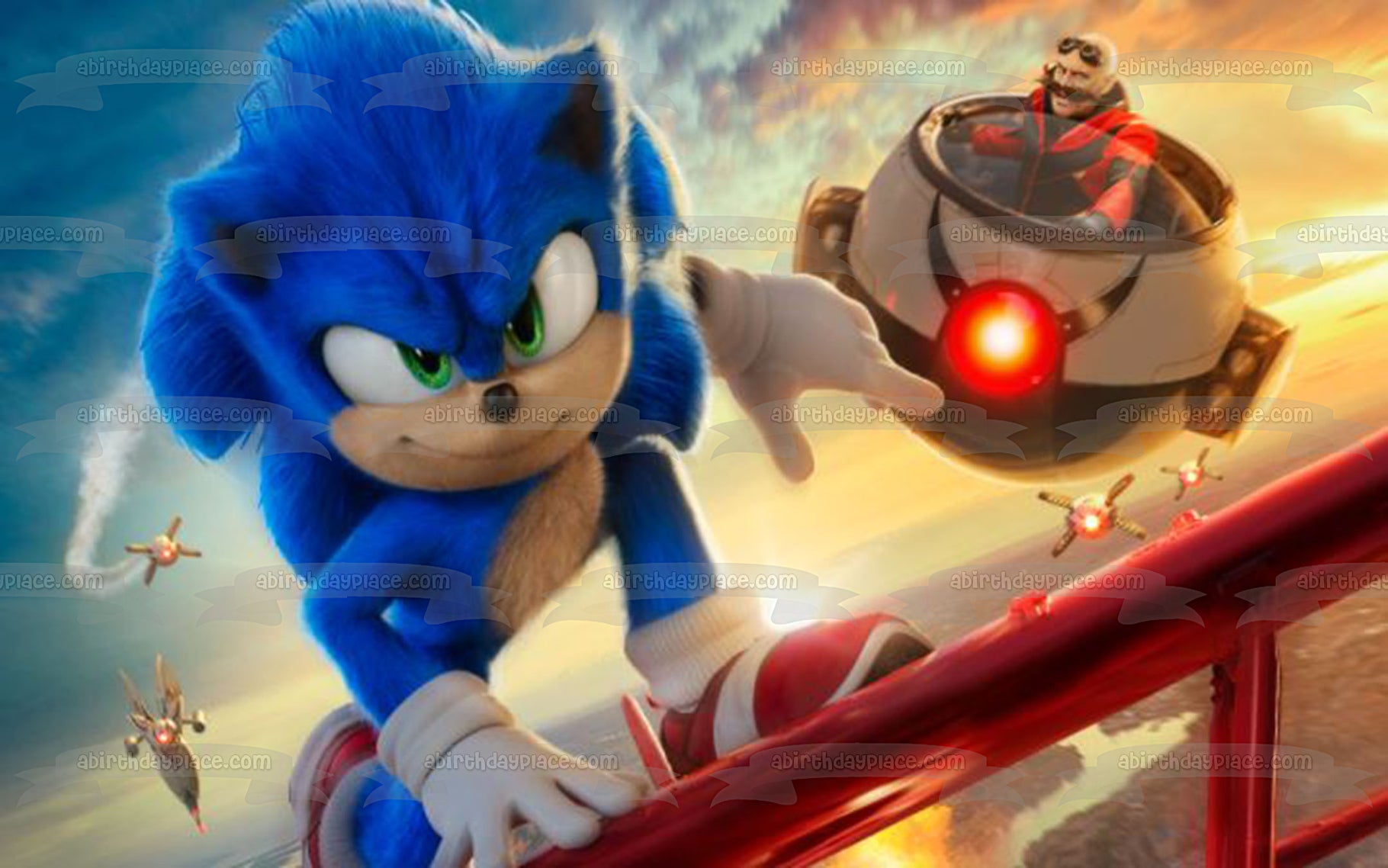 Decorate your Cake with this Sonic the Hedgehog 2 themed Edible Cake Topper Image featuring Doctor Eggman and Sonic!