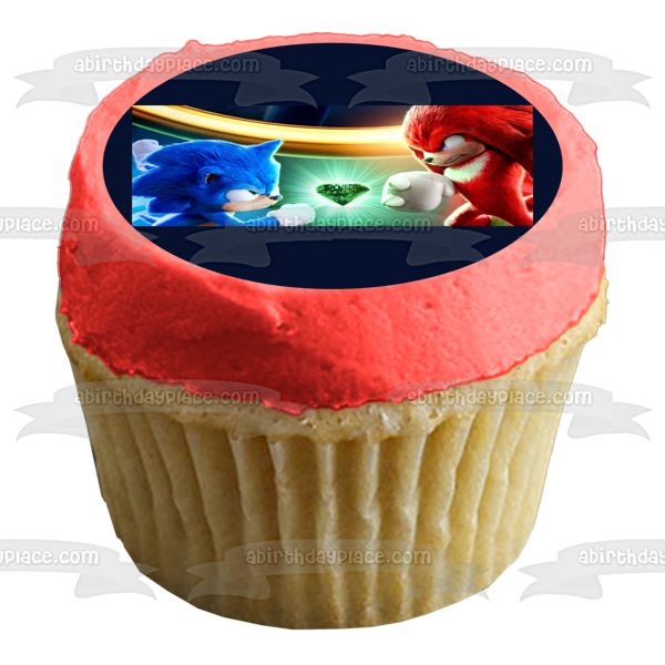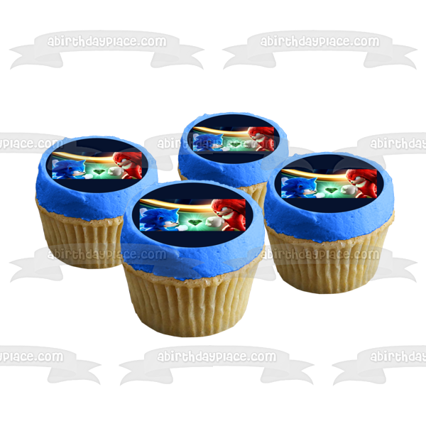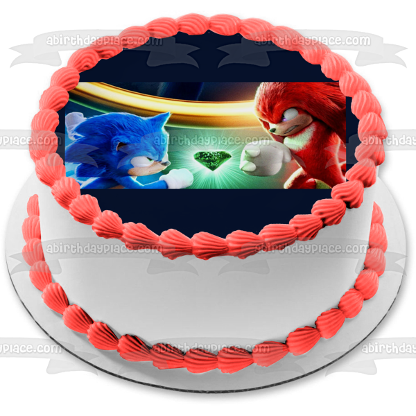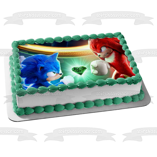 Decorate your Cake with this Sonic the Hedgehog 2 themed Edible Cake Topper Image featuring Knuckles, Sonic and Gold Rings!