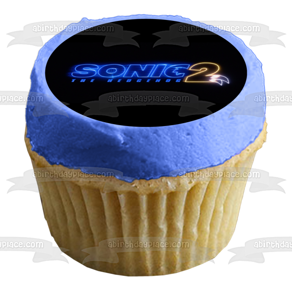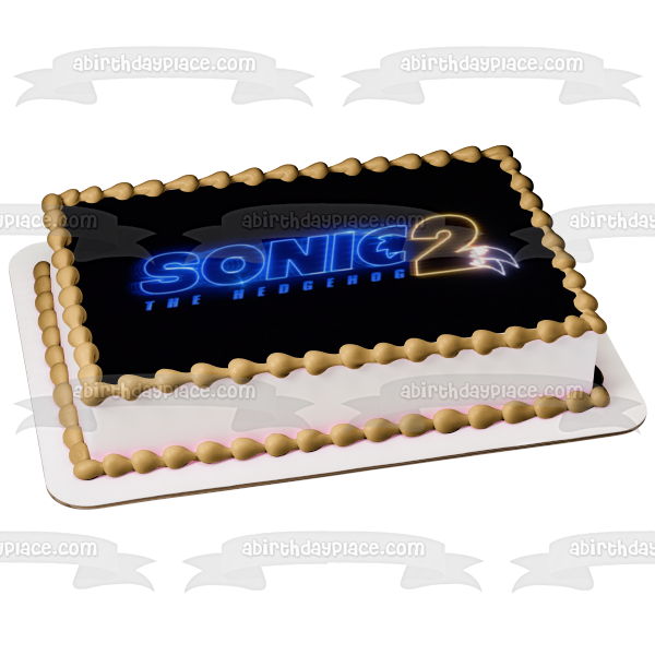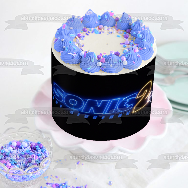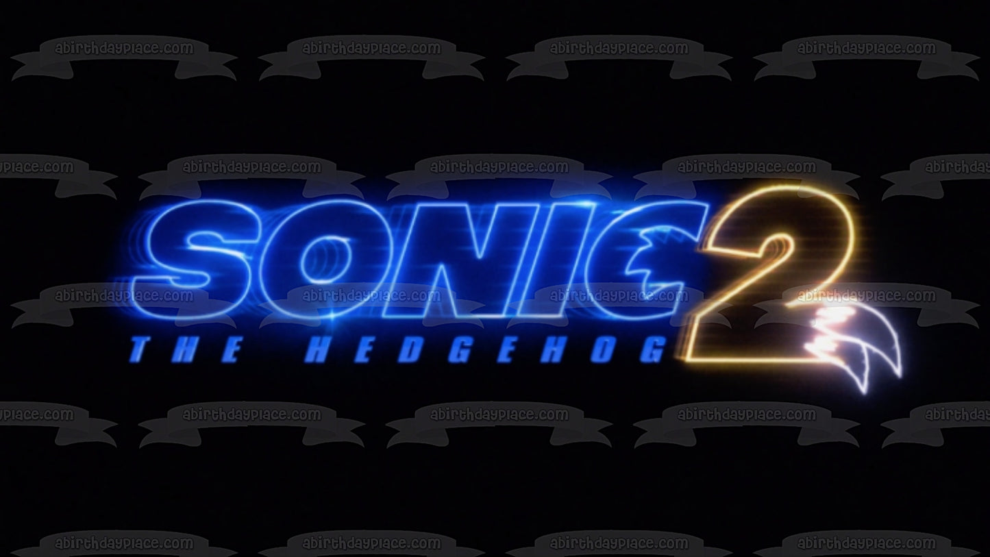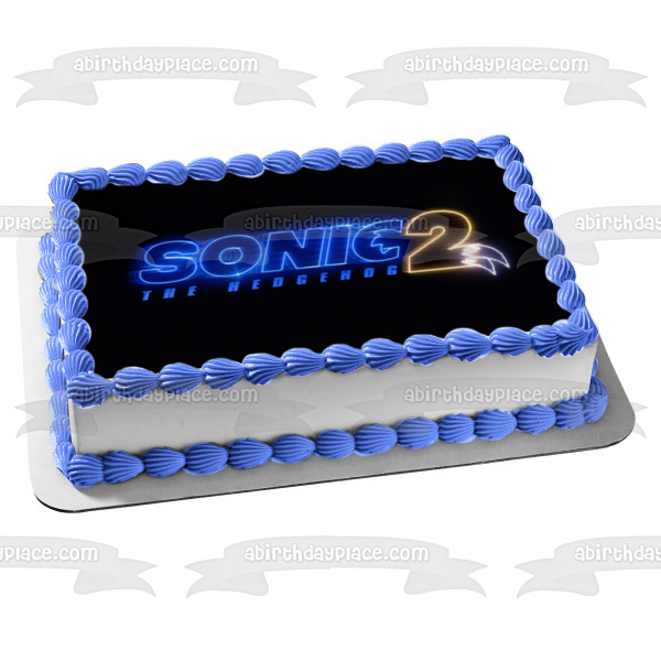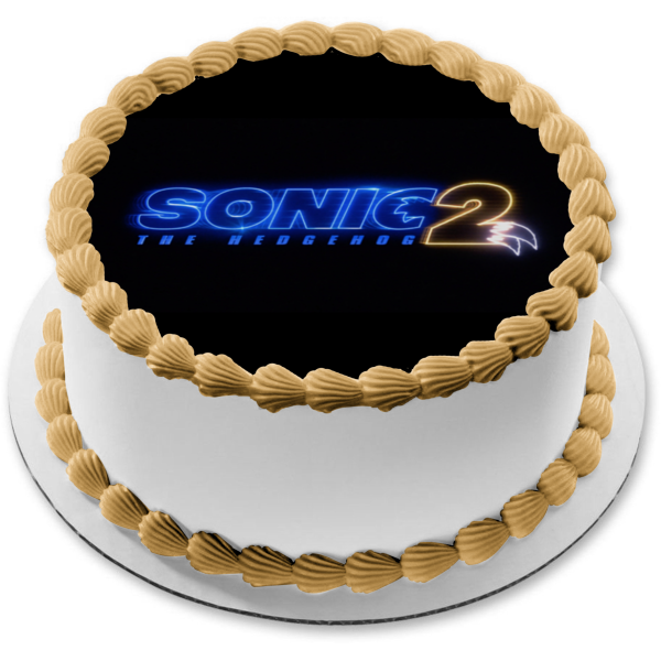 Decorate your Cake with this Sonic the Hedgehog 2 themed Edible Cake Topper Image featuring their Logo with a Black Background!