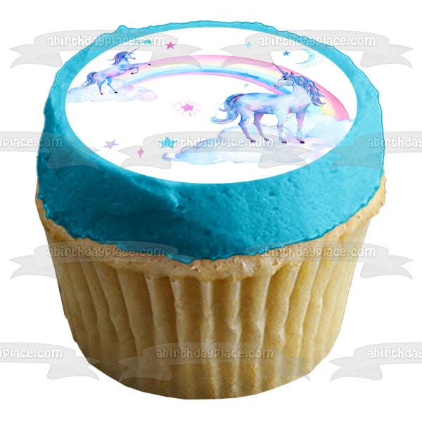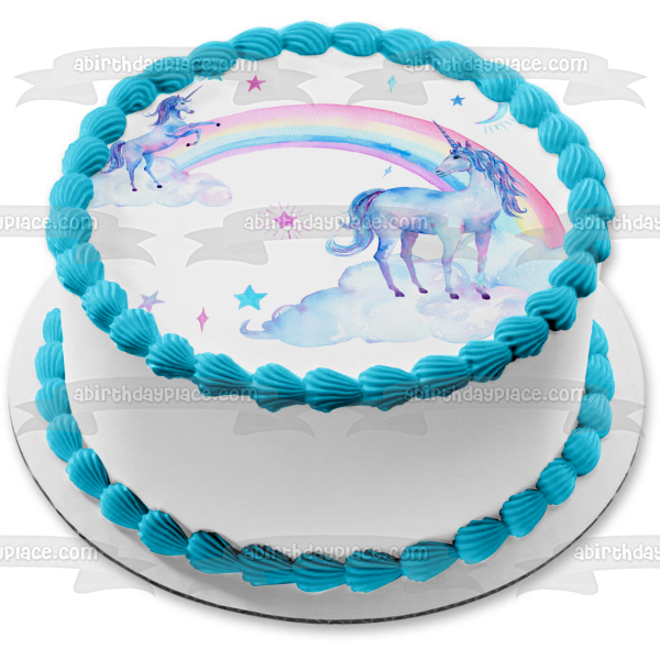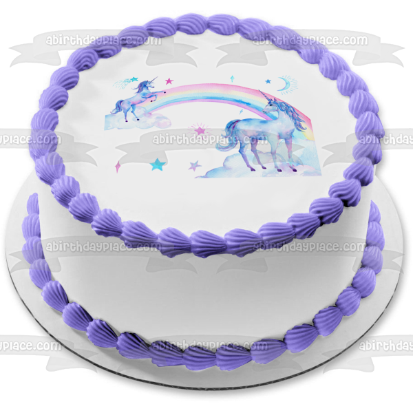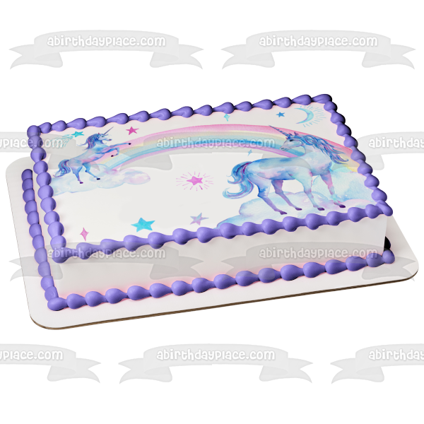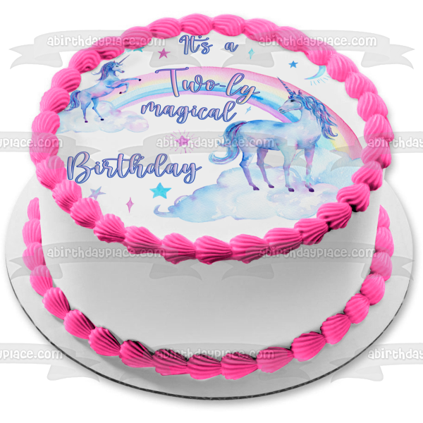 Decorate your Cake with this A Twoly Magical Birthday themed Edible Cake Topper Image featuring Unicorns, Rainbows and Stars!