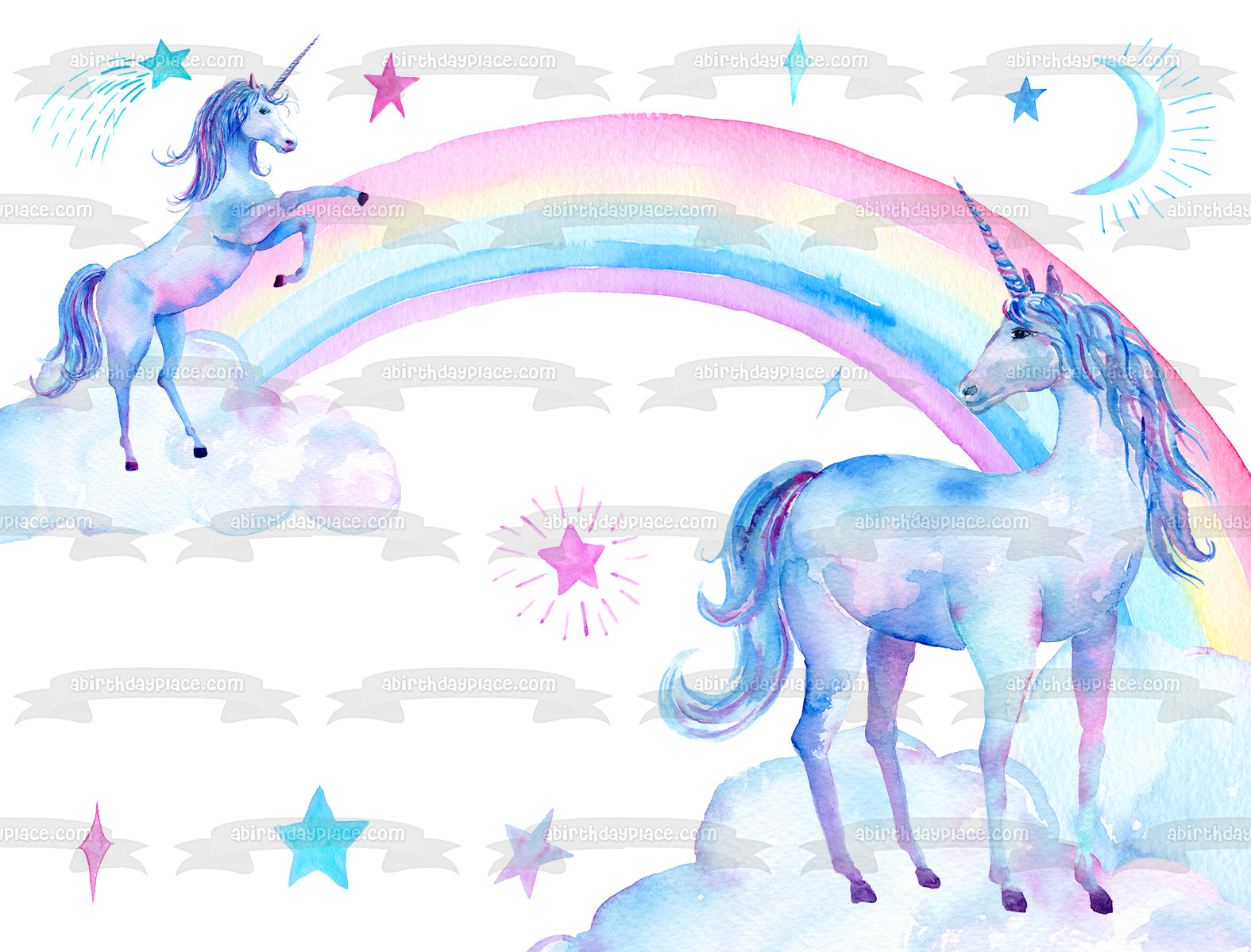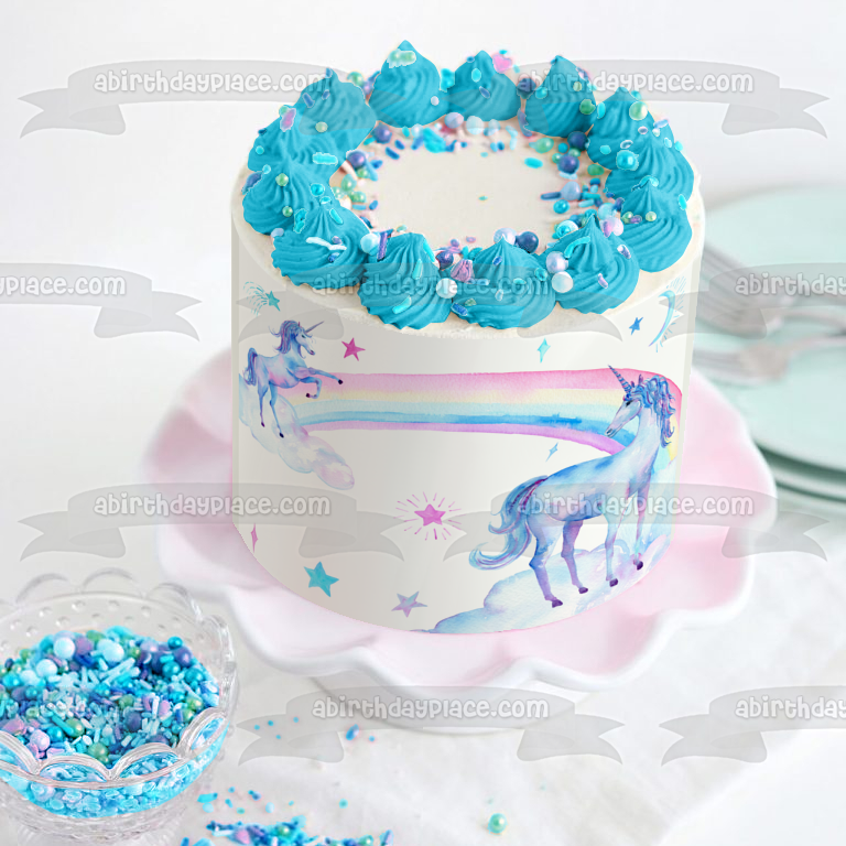 A Twoly Magical Birthday Unicorns, Rainbows and Stars Edible Cake Topper Image or Strips ABPID56256