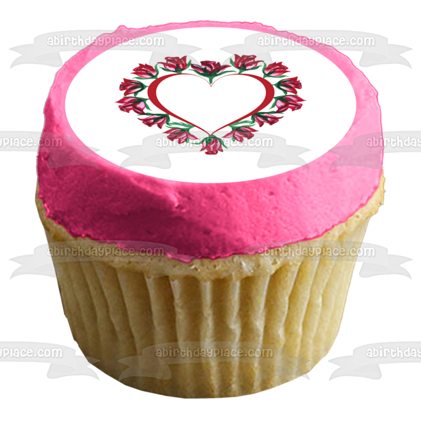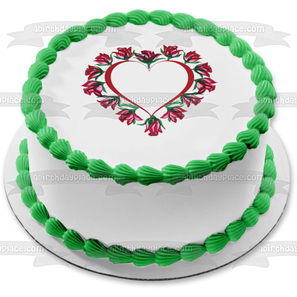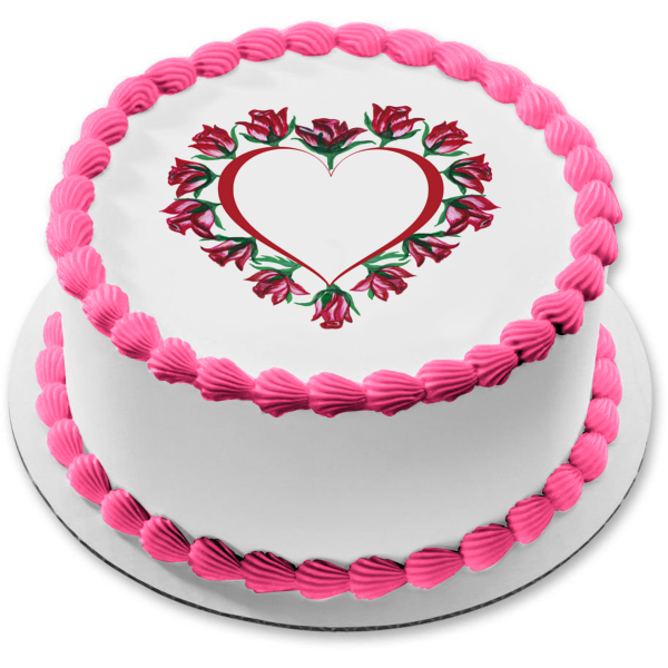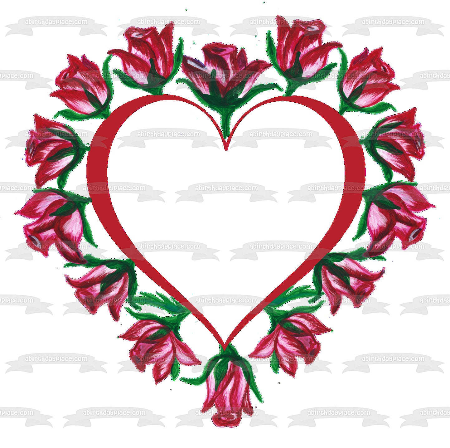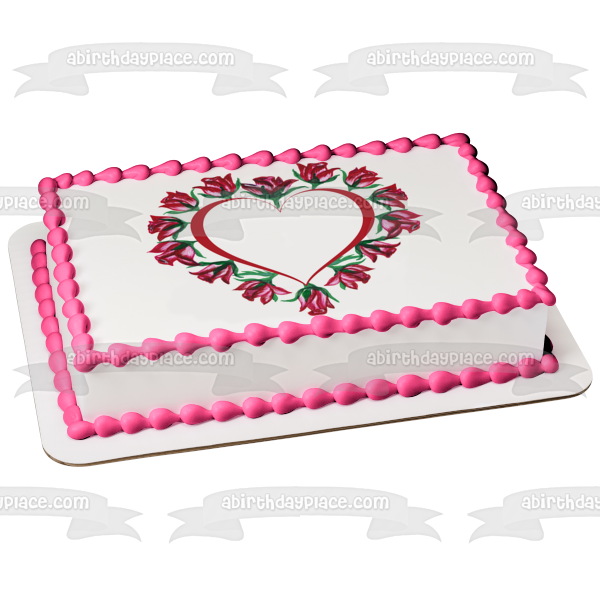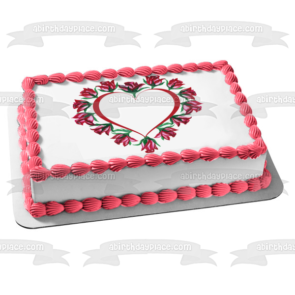 Decorate your Cake with this Roses Heart themed Edible Cake Topper Image!