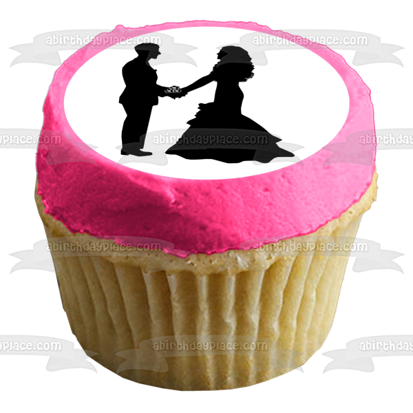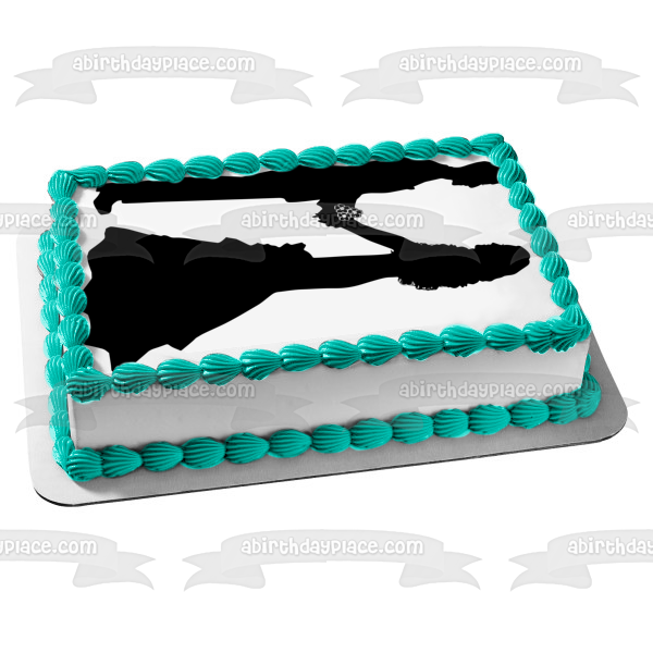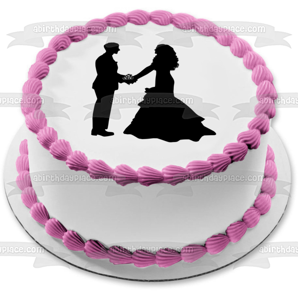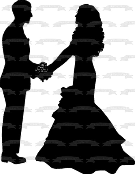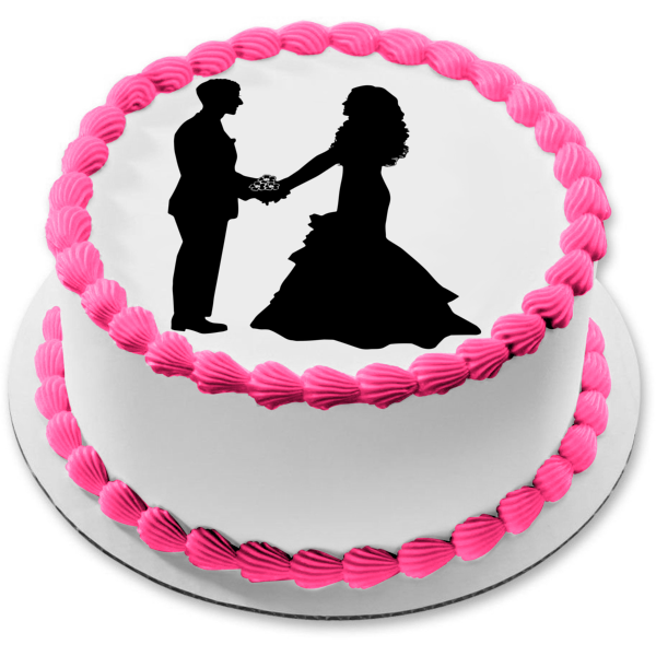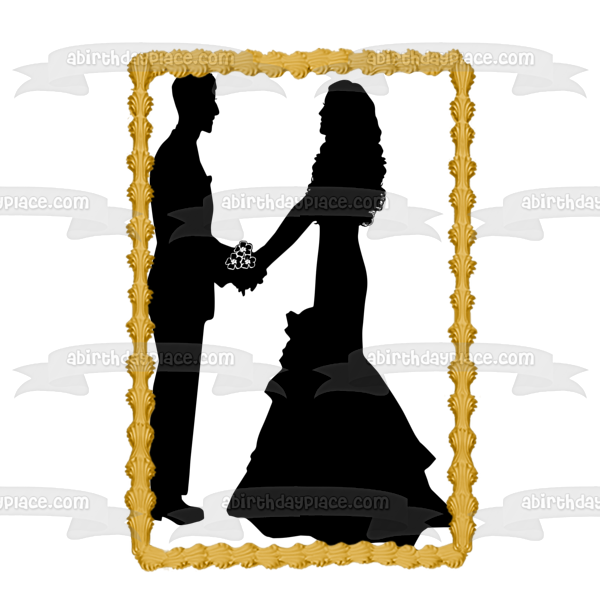 Decorate your Cake with this Wedding themed Edible Cake Topper Image featuring a Bride and Groom Silhouette!