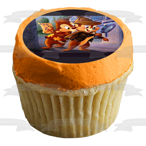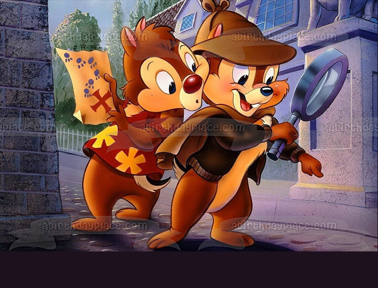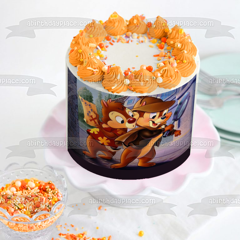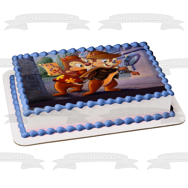 Decorate your Cake with this Chip N Dale Rescue Rangers themed Edible Cake Topper Image featuring Chip and Dale as Detectives!