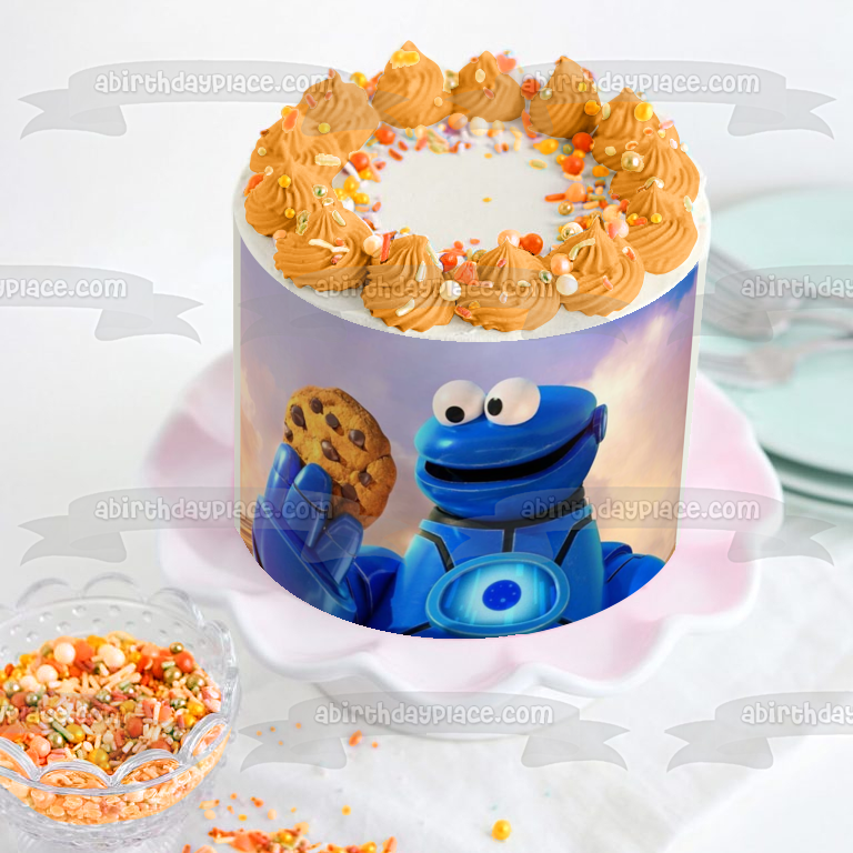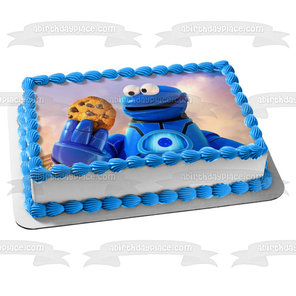 Decorate your Cake with this Sesame Street Mecha Builders themed Edible Cake Topper Image featuring Cookie Monster!