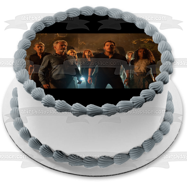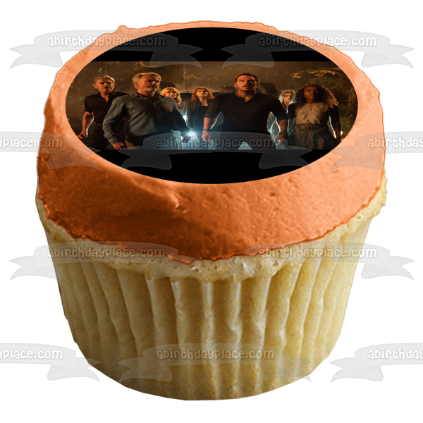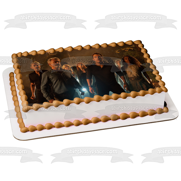 Decorate your Cake with this Jurassic World Dominion themed Edible Cake Topper Image featuring Alan, Owen, Kayla and Claire!
