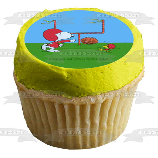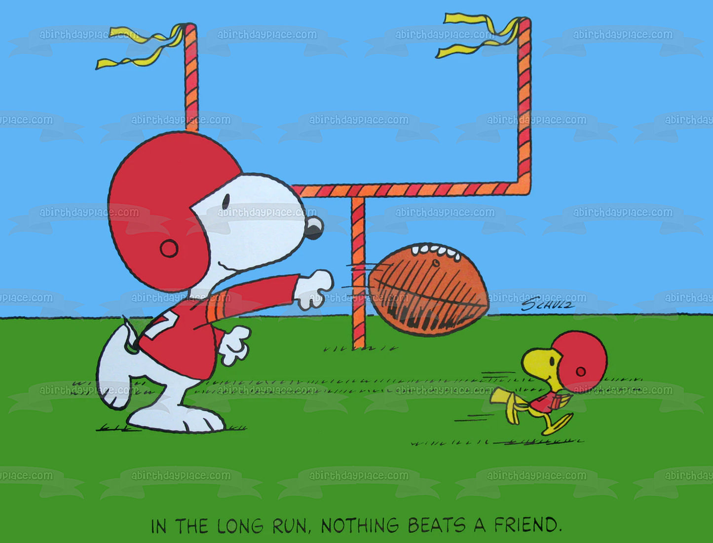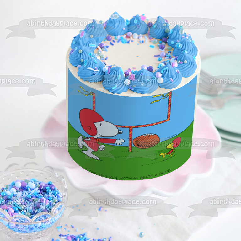 Snoopy and Woodstock Nothing Beats a Friend Football Toss Edible Cake Topper Image ABPID56403