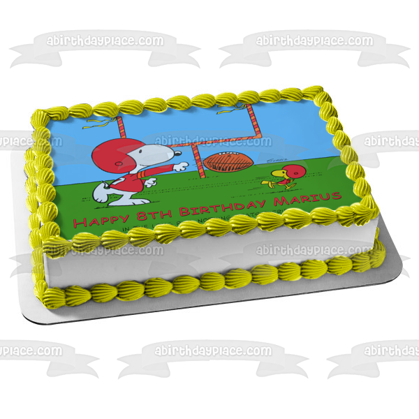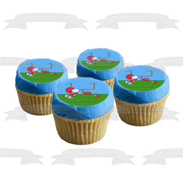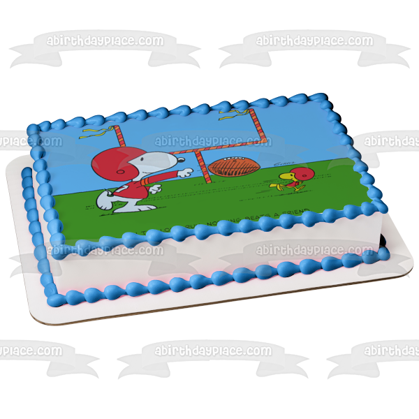 Decorate your Cake with this Snoopy and Woodstock Nothing Beats a Friend themed Edible Cake Topper Image featuring a Football being Tossed!