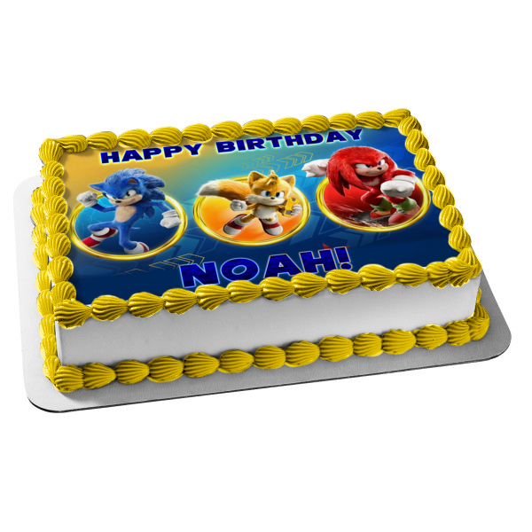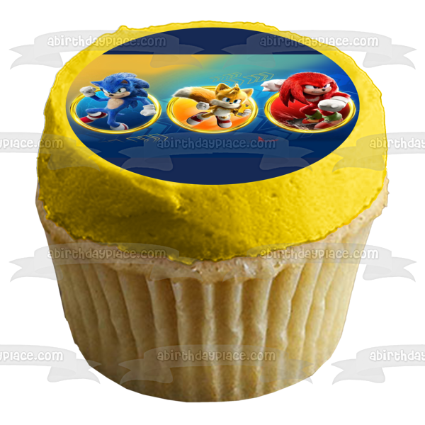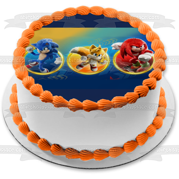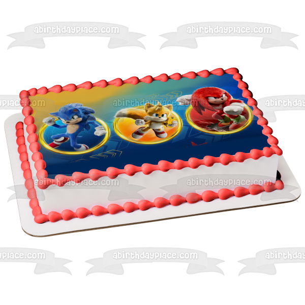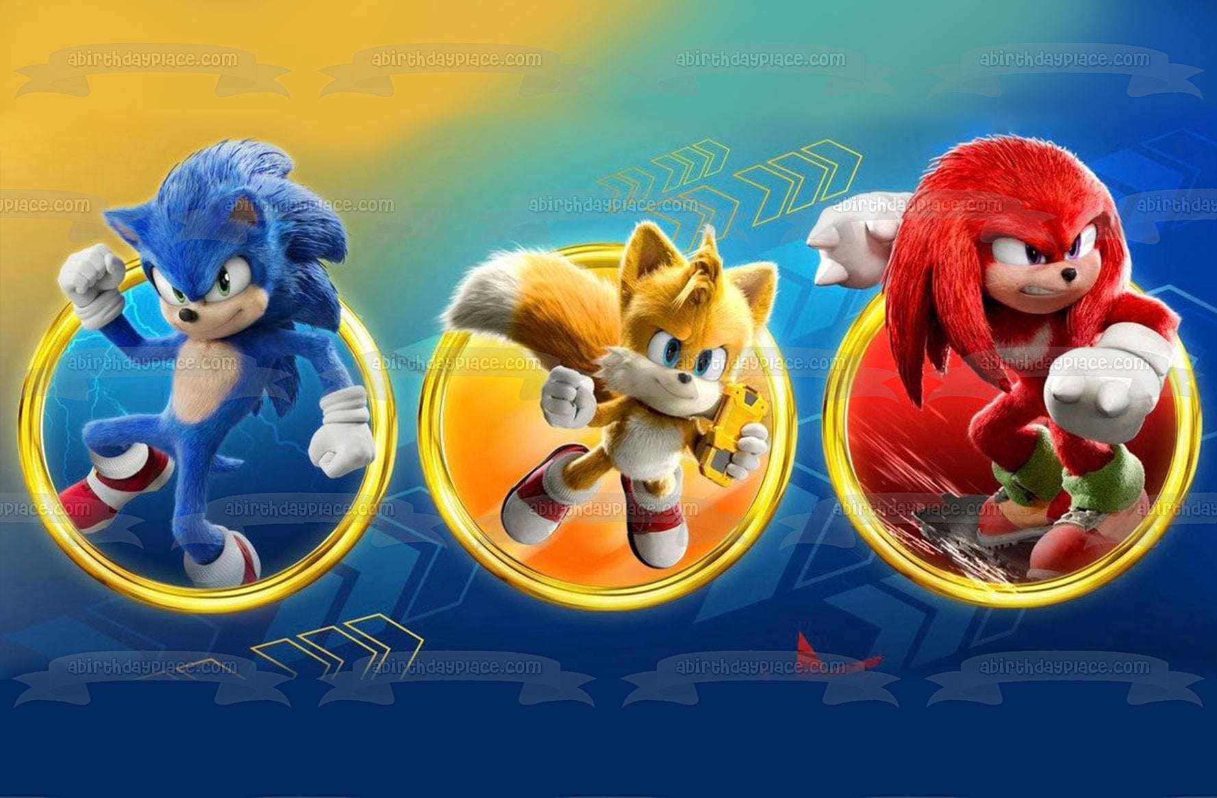 Decorate your Cake with this Sonic the Hedgehog 2 themed Edible Cake Topper Image featuring Tails and Knuckles in Rings and Speed Lines!