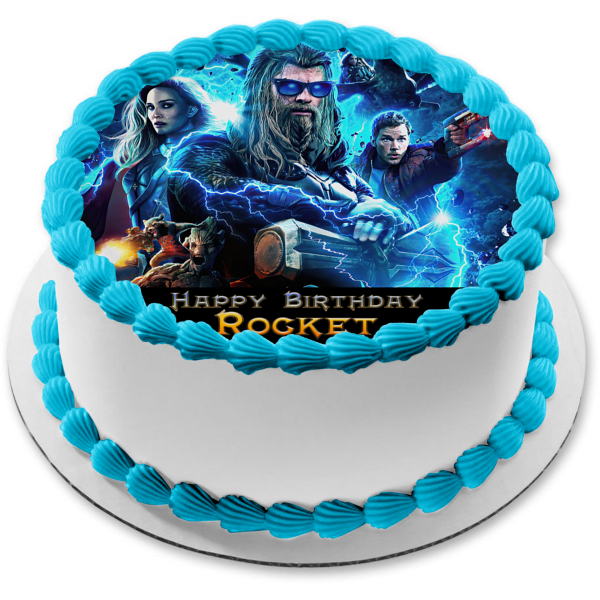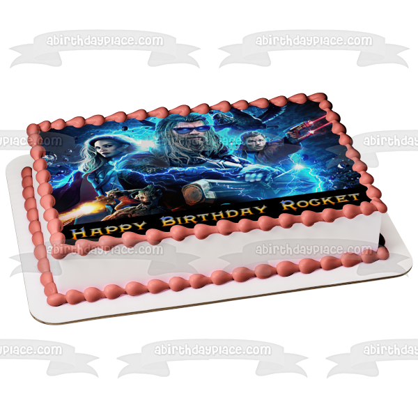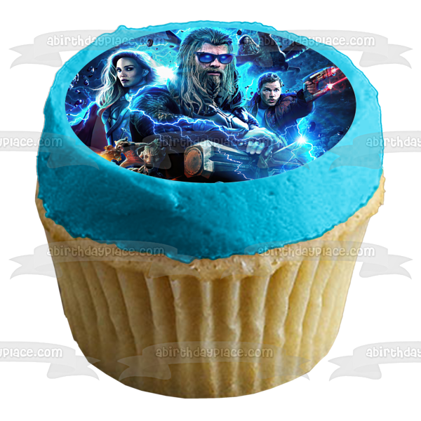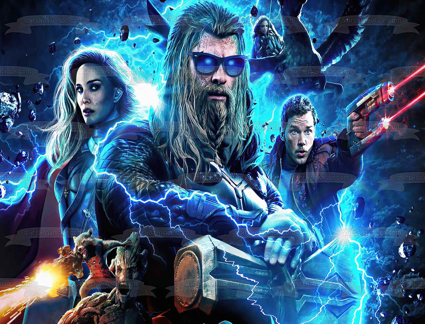 Decorate your Cake with this Thor Love and Thunder themed Edible Cake Topper Image featuring Jane and the Guardians of the Galaxy!