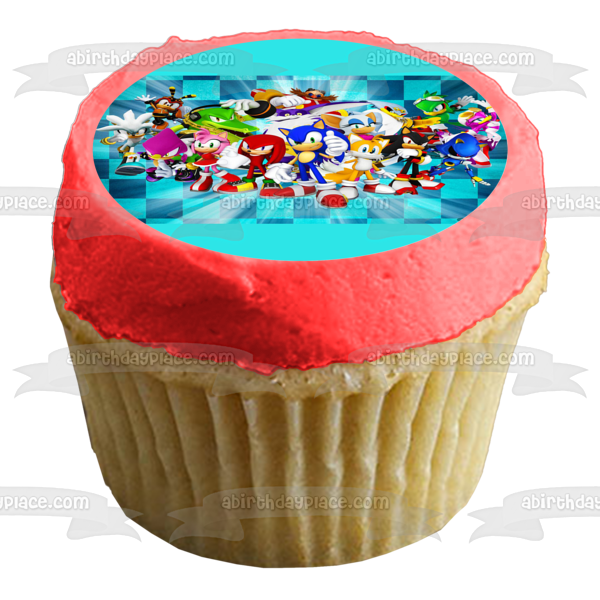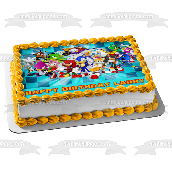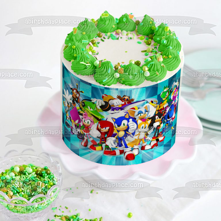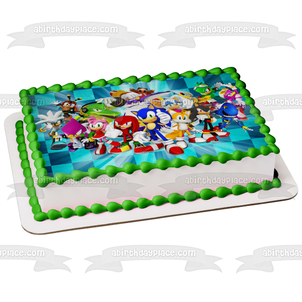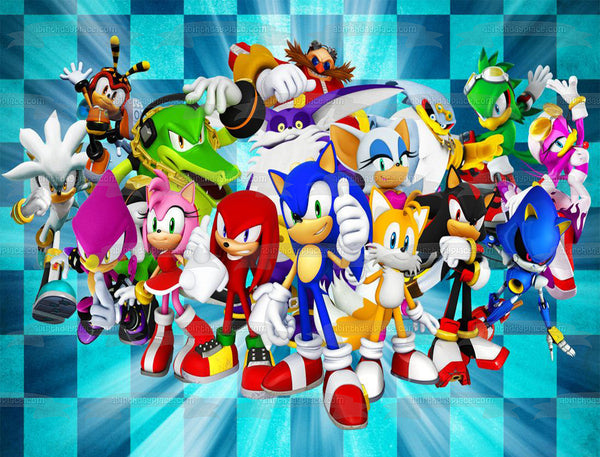 Sonic Cast Checkers Background Tails Amy Rose Knuckles Edible Cake Topper Image ABPID56453