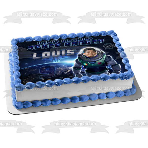 Decorate your Cake with this Disney Lightyear themed Edible Cake Topper Image featuring a Space Ranger Photo Frame!