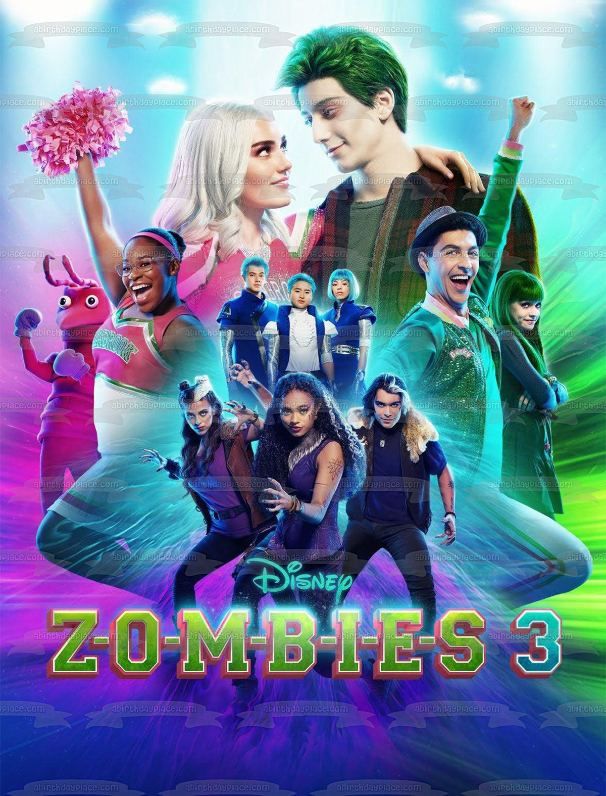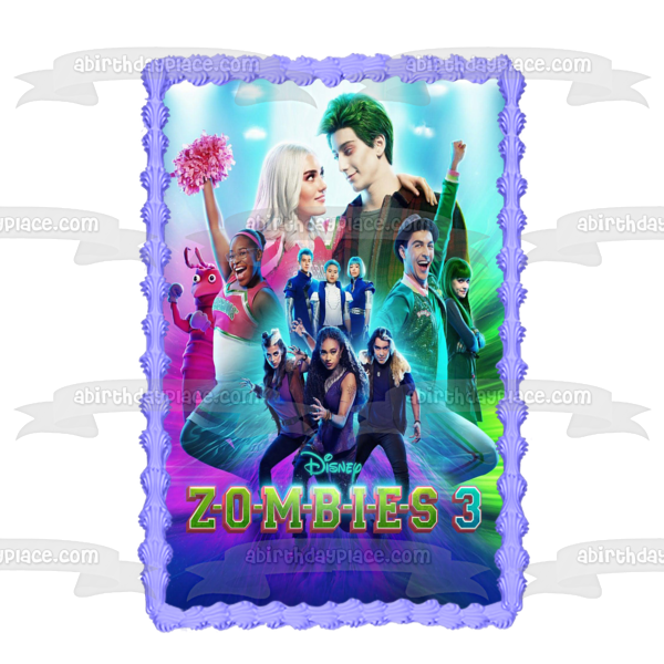 Decorate your Cake with this Disney Zombies 3 themed Edible Cake Topper Image featuring Zed and Addison!