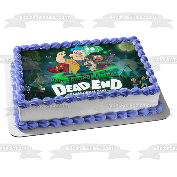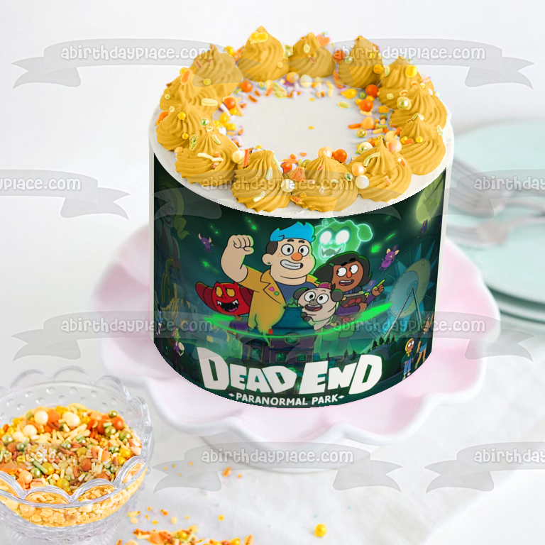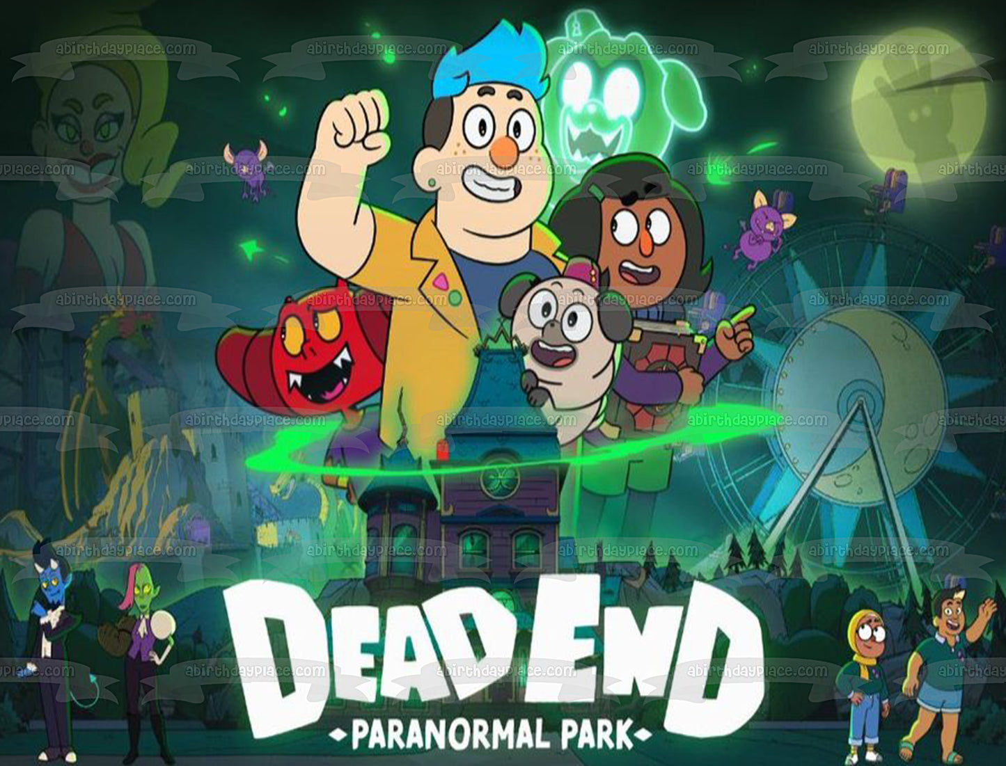Dead End Paranormal Park Poster with Badyah Pugsley Norma Khan and Barney Guttman Edible Cake Topper Image ABPID56505