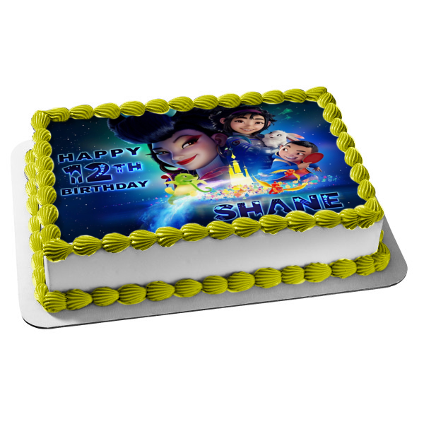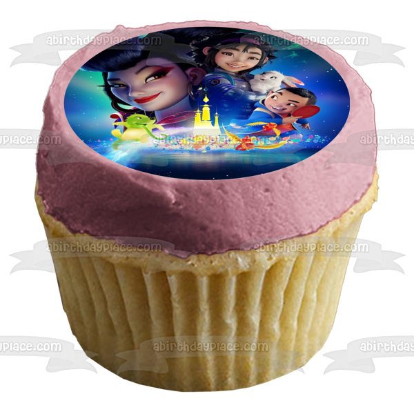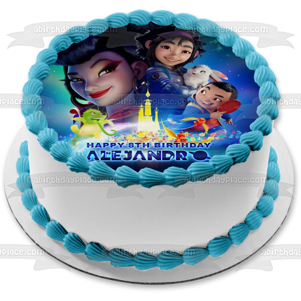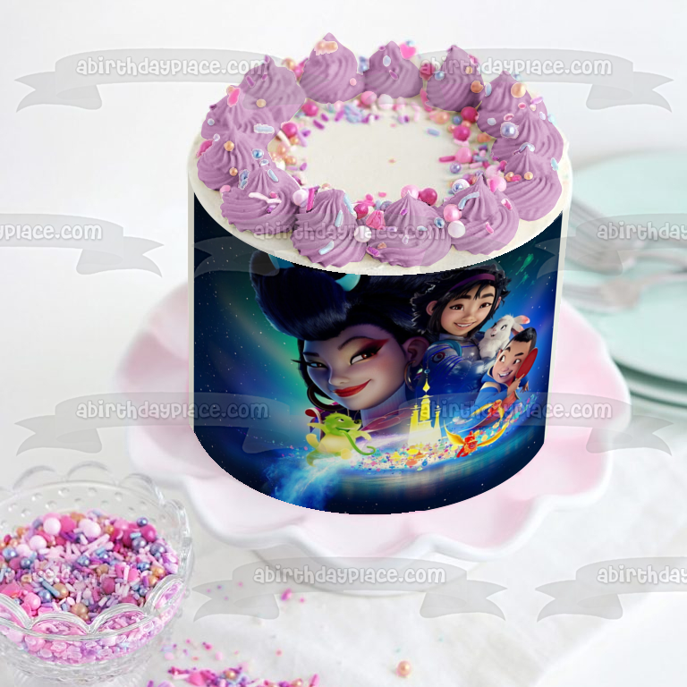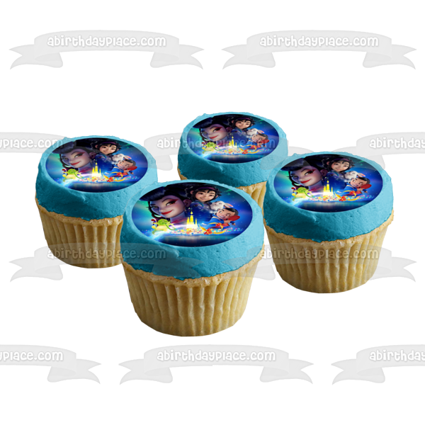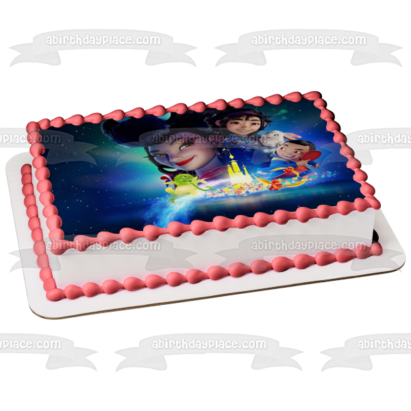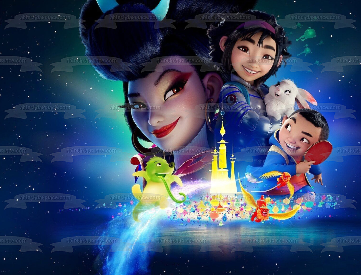 Decorate your Cake with this Over the Moon Mas Alla de la Luna themed Edible Cake Topper Image featuring Fei Fei, Chang'e, Jade Rabbit, Gobi and Chin Croak!