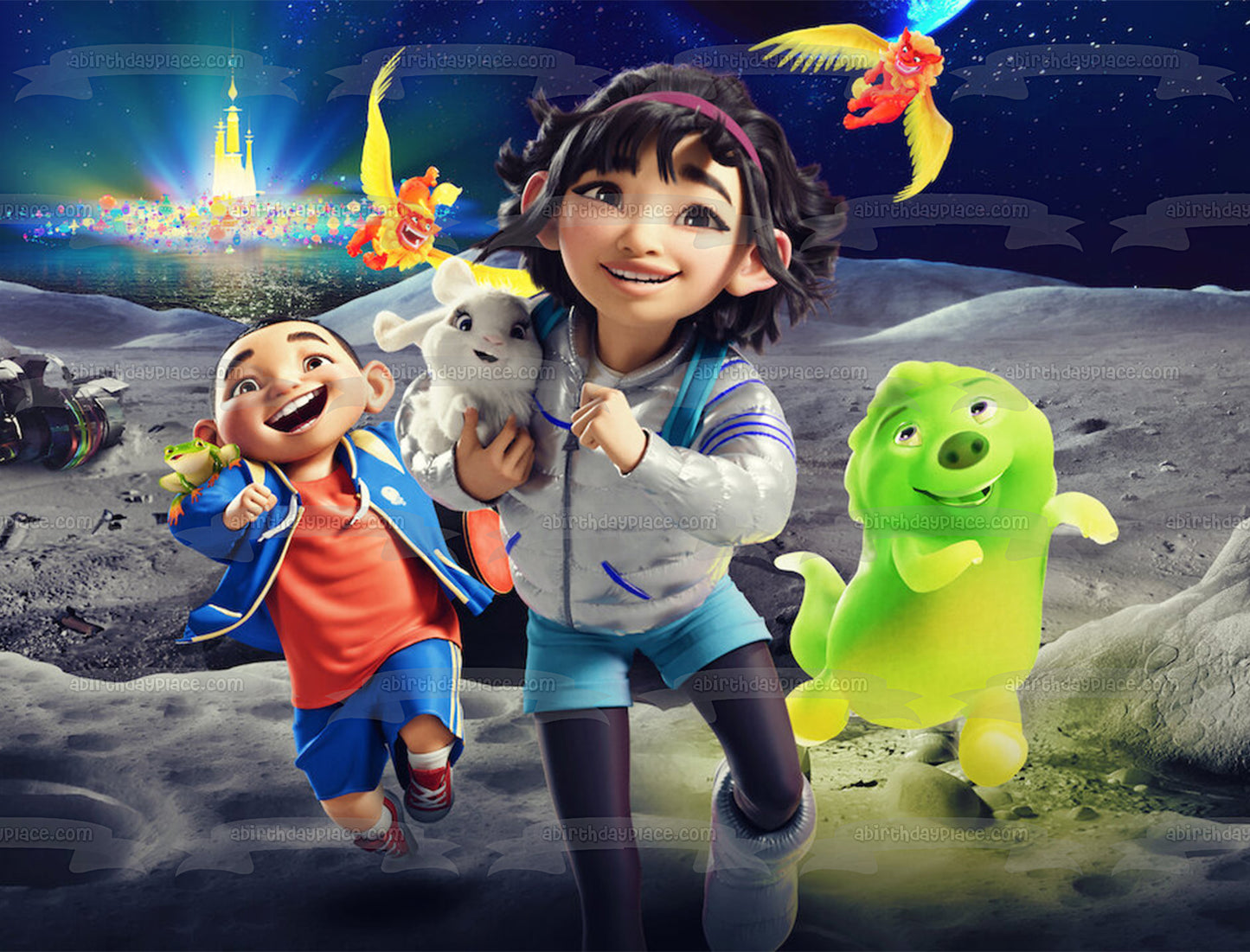 Over the Moon Mas Alla De La Luna Running on the Moon Fei Fei Gobi Chin Croak Edible Cake Topper Image ABPID56516