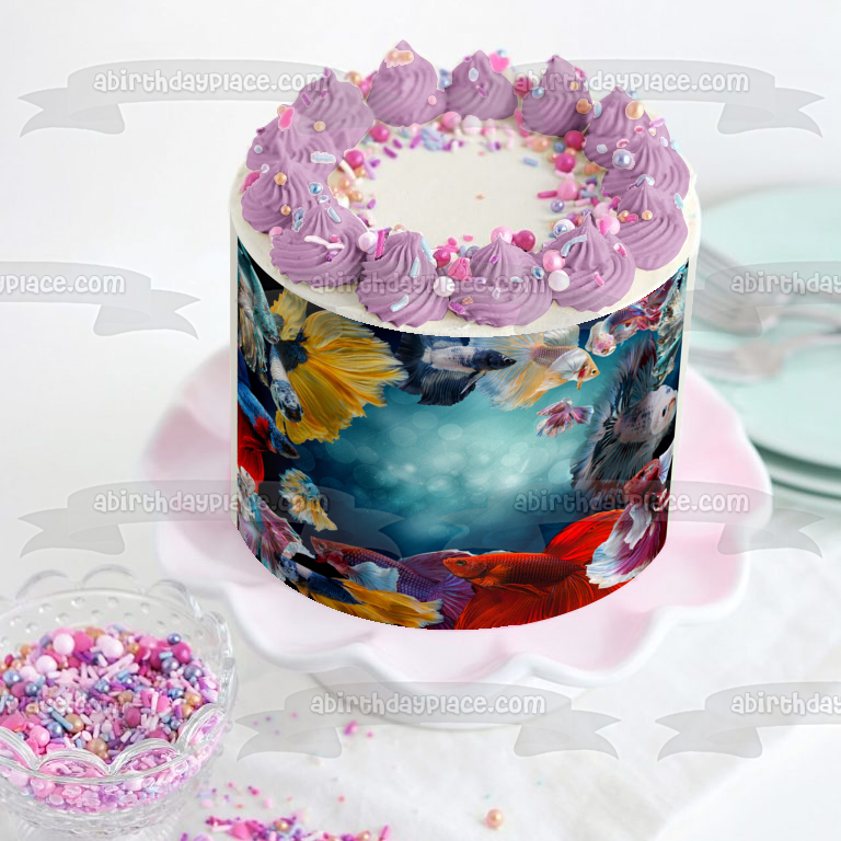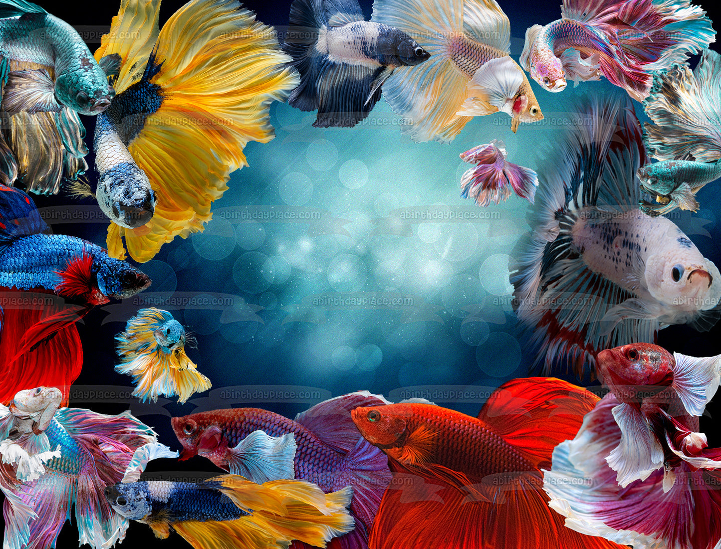 Decorate your Cake with this Beta Fish themed Edible Cake Topper Image featuring Various Breeds!