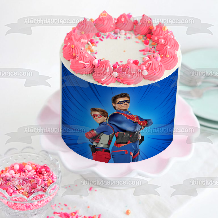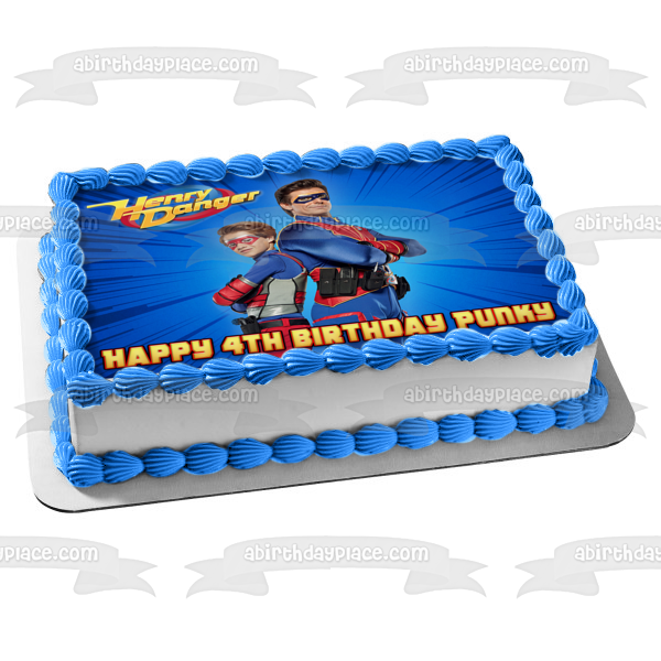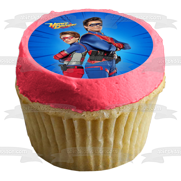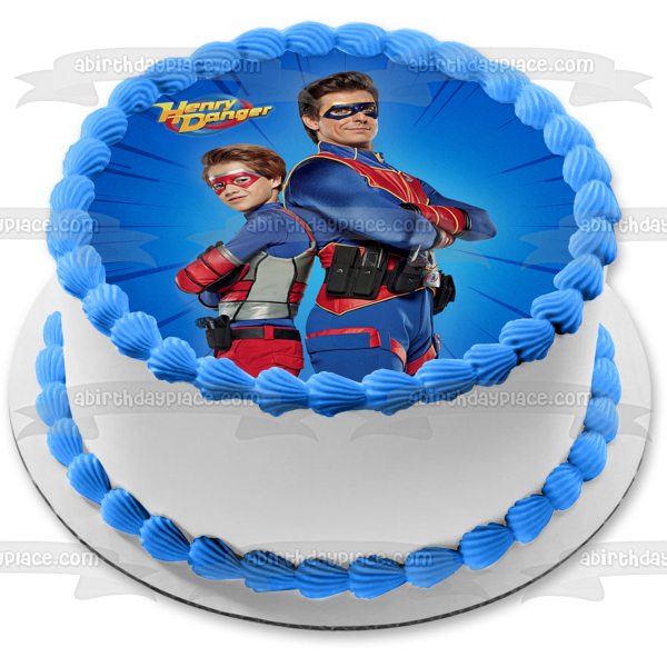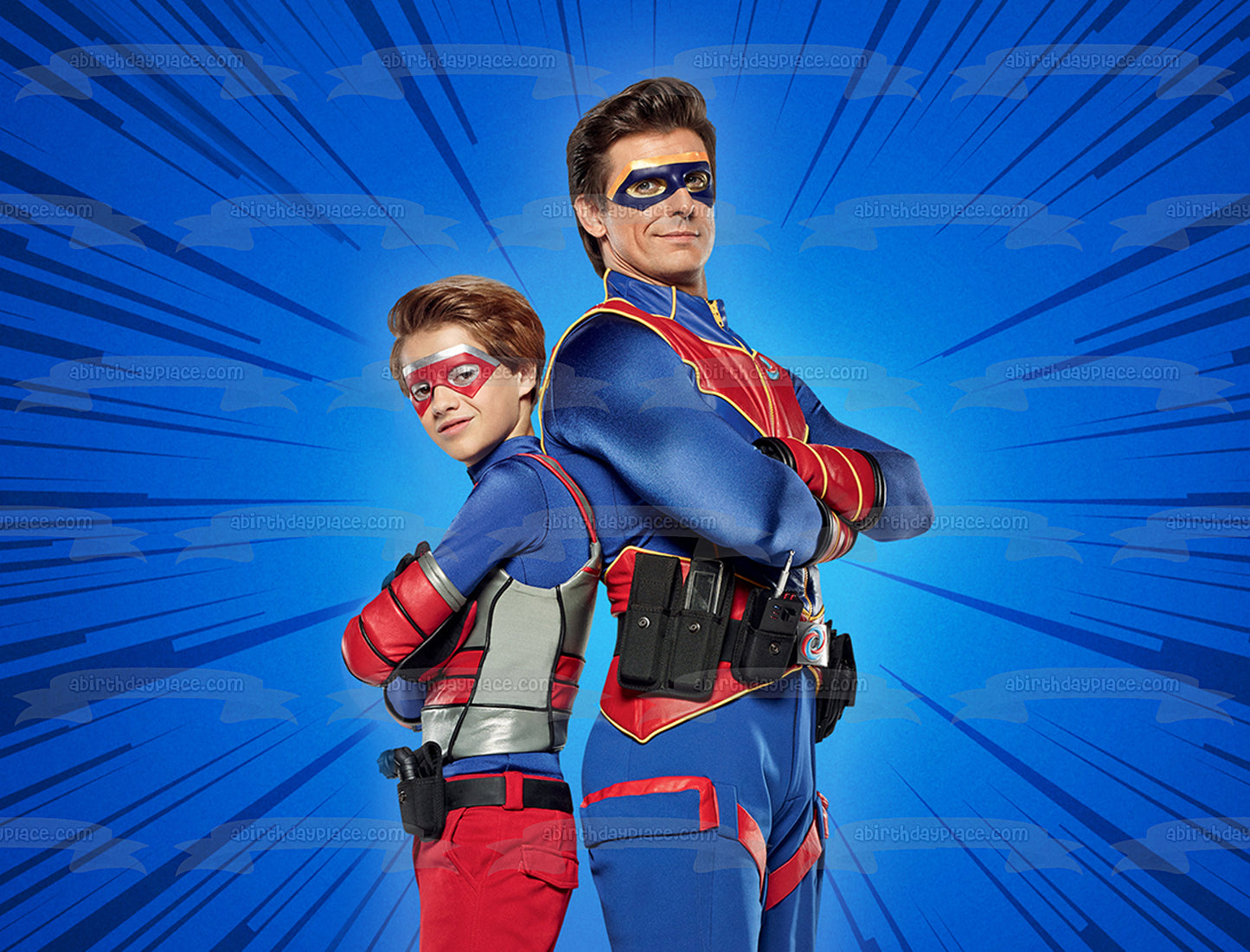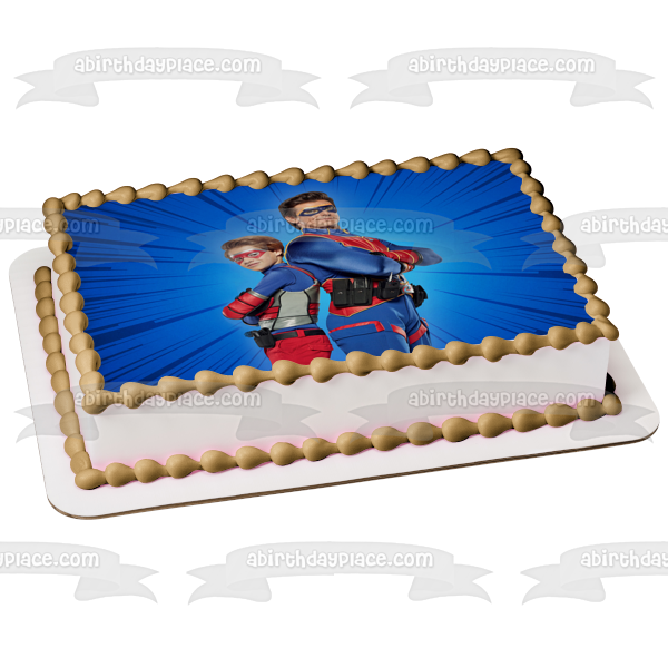 Decorate your Cake with this Henry Danger themed Edible Cake Topper Image featuring Captain Man Hero Pose with a Blue Background!
