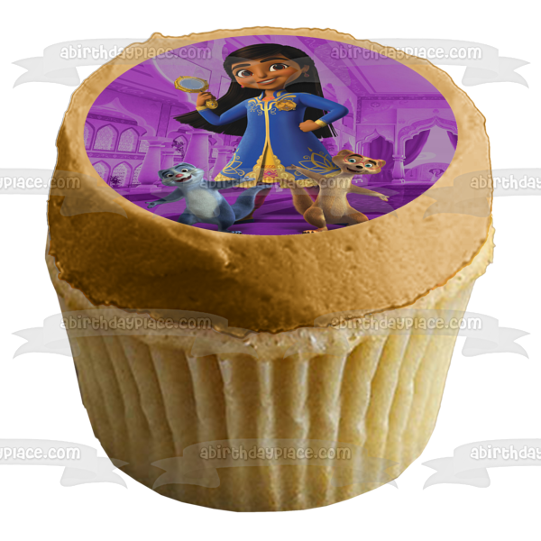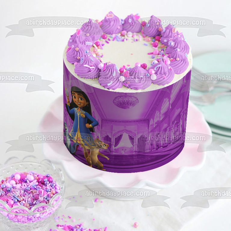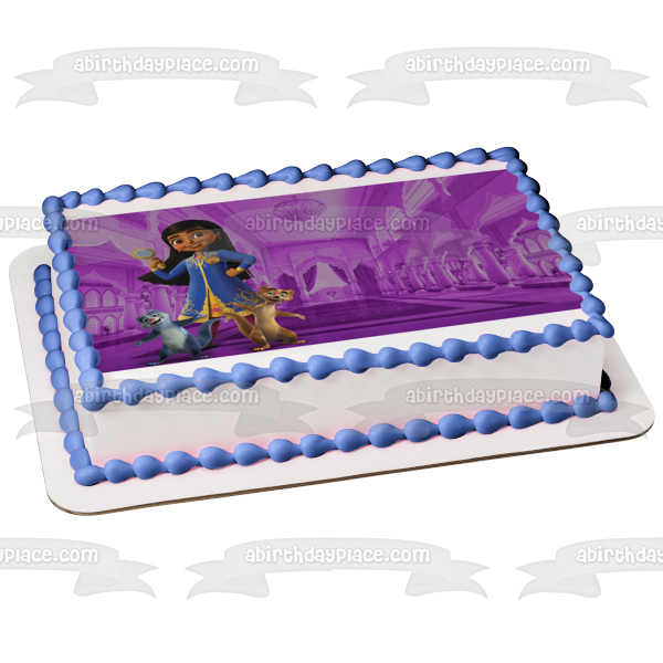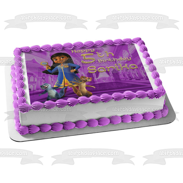 Decorate your Cake with this Mira Royal Detective themed Edible Cake Topper Image featuring Mikku and Chikku in a Purple Palace!