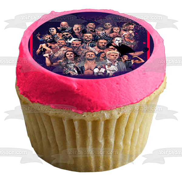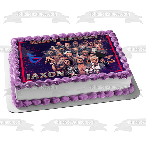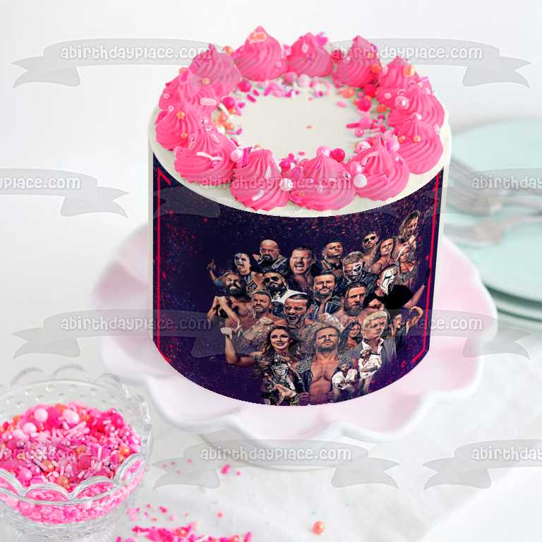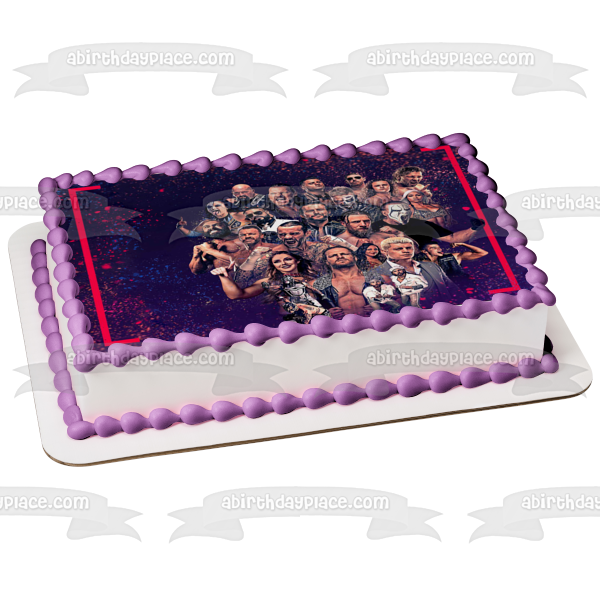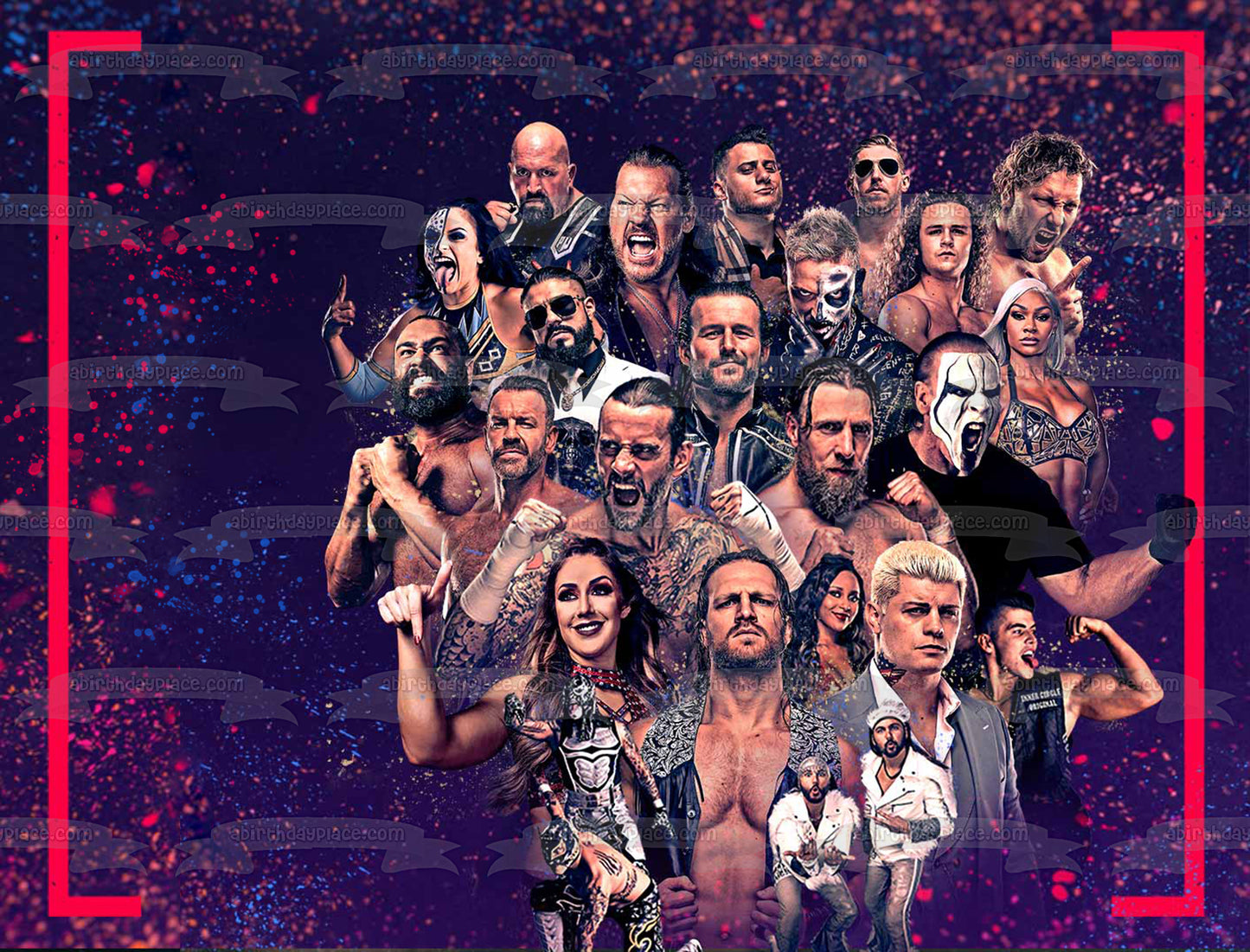 Decorate your Cake with this All Elite AEW Men and Women Splatter Paint themed Edible Cake Topper Image featuring The Bunny, Daniel Garcia and Brian Cage!