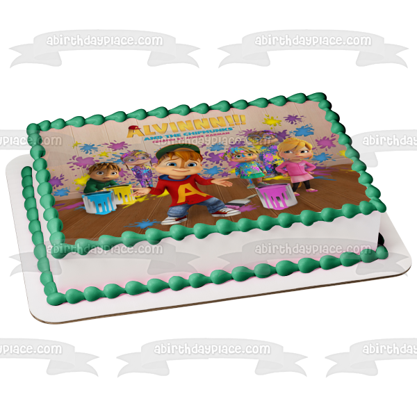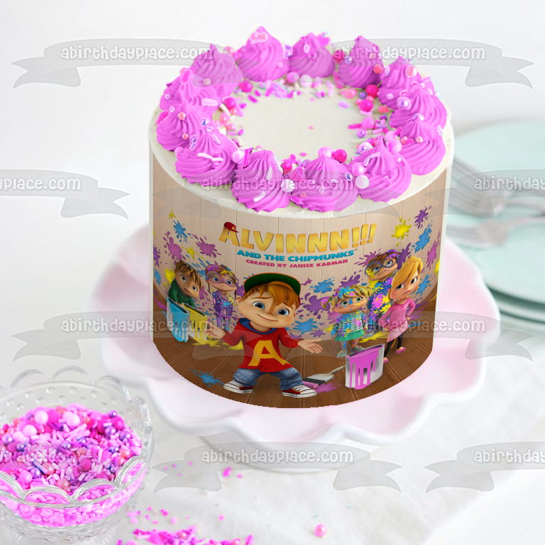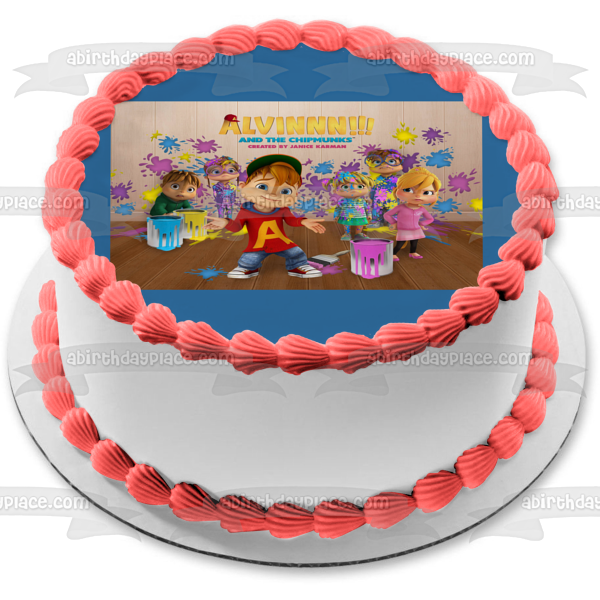 Decorate your Cake with this Alvinnn!!! and the Chipmunks themed Edible Cake Topper Image featuring Brittany, Simon, Alvin, Theodore, Jeanette an Eleanor!
