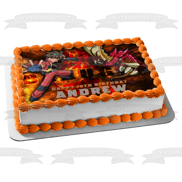 Decorate your Cake with this Bakugan themed Edible Cake Topper Image featuring Battle Ready Dragon Fire!