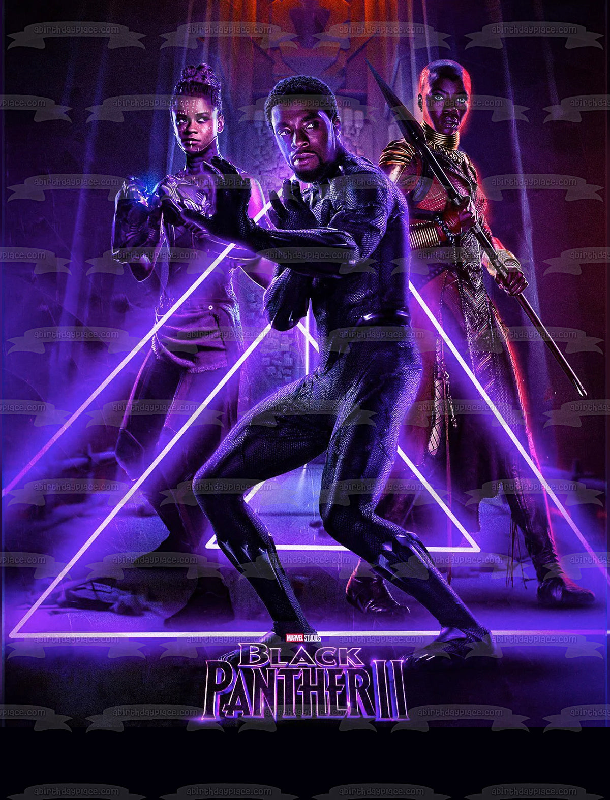 Black Panther 2 Shuri Okoye T'Challa Retro Triangle Poster Edible Cake Topper Image ABPID56566