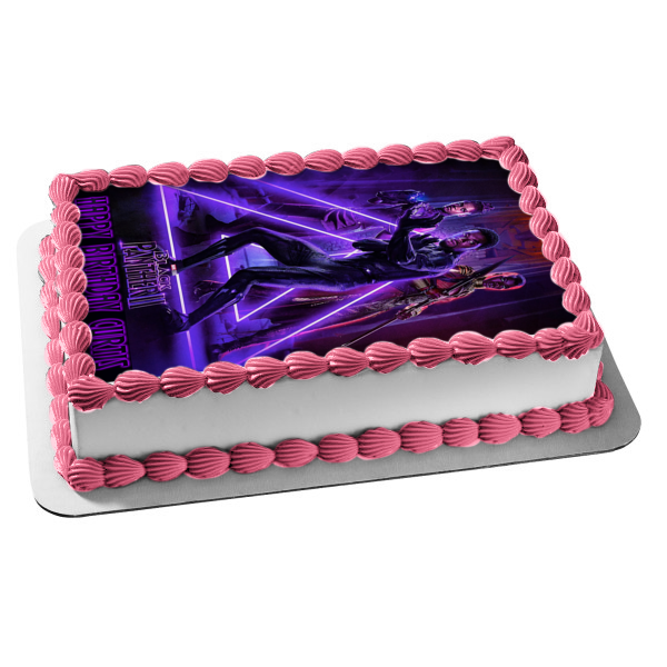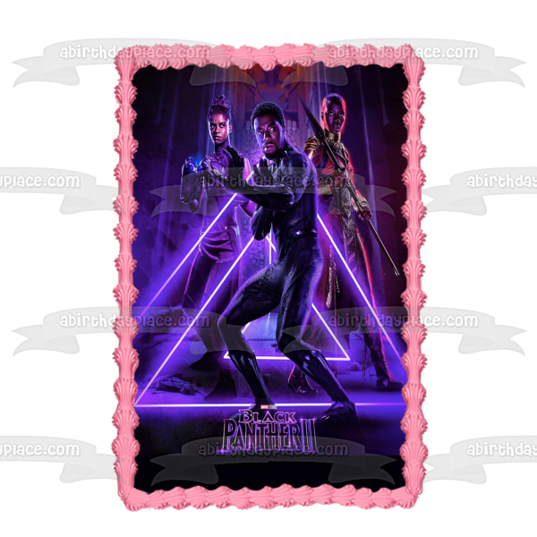 Decorate your Cake with this Black Panther 2 Triangle Poster themed Edible Cake Topper Image featuring Shuri, Okoye and T'Challa!