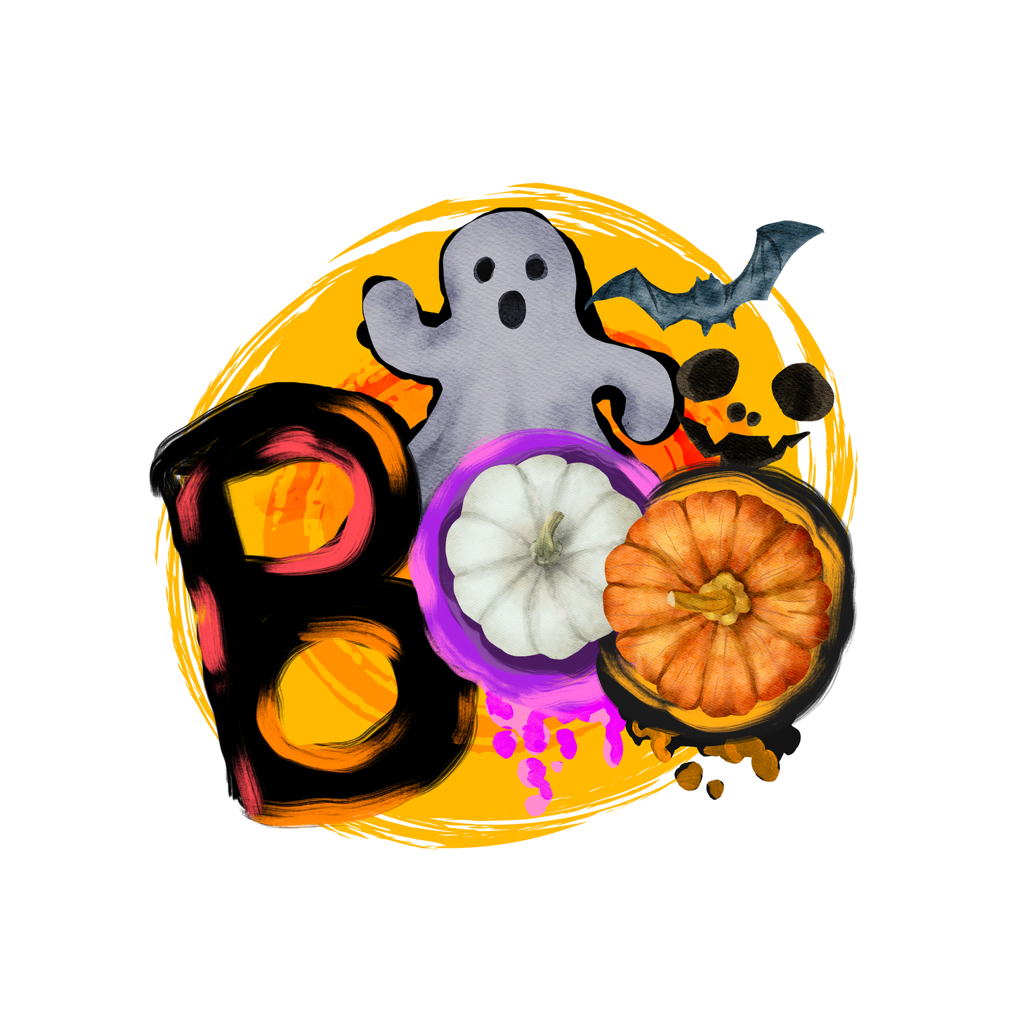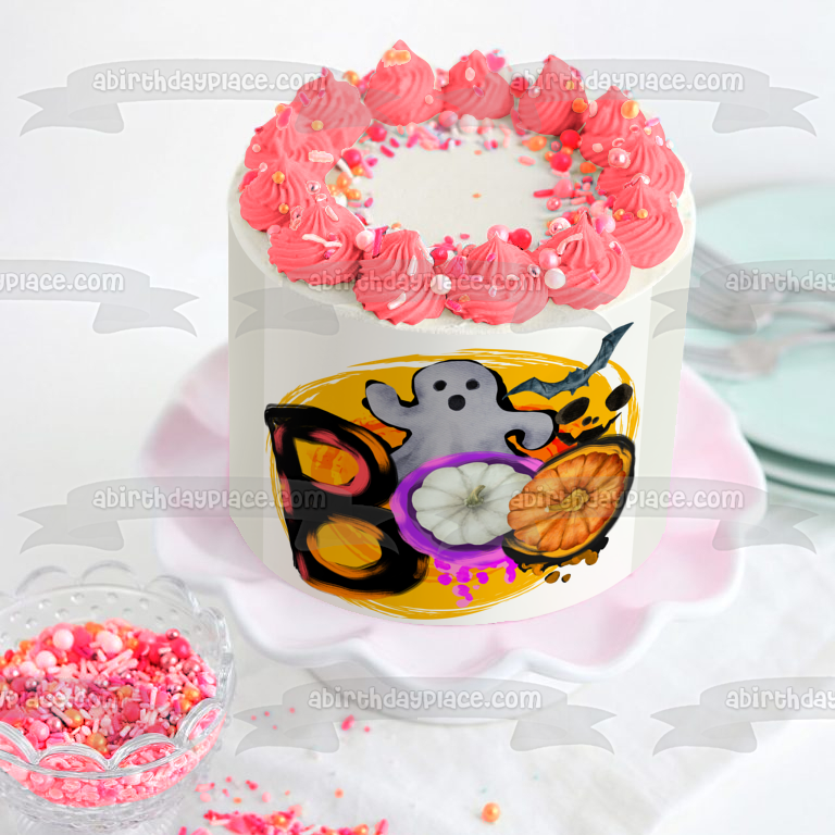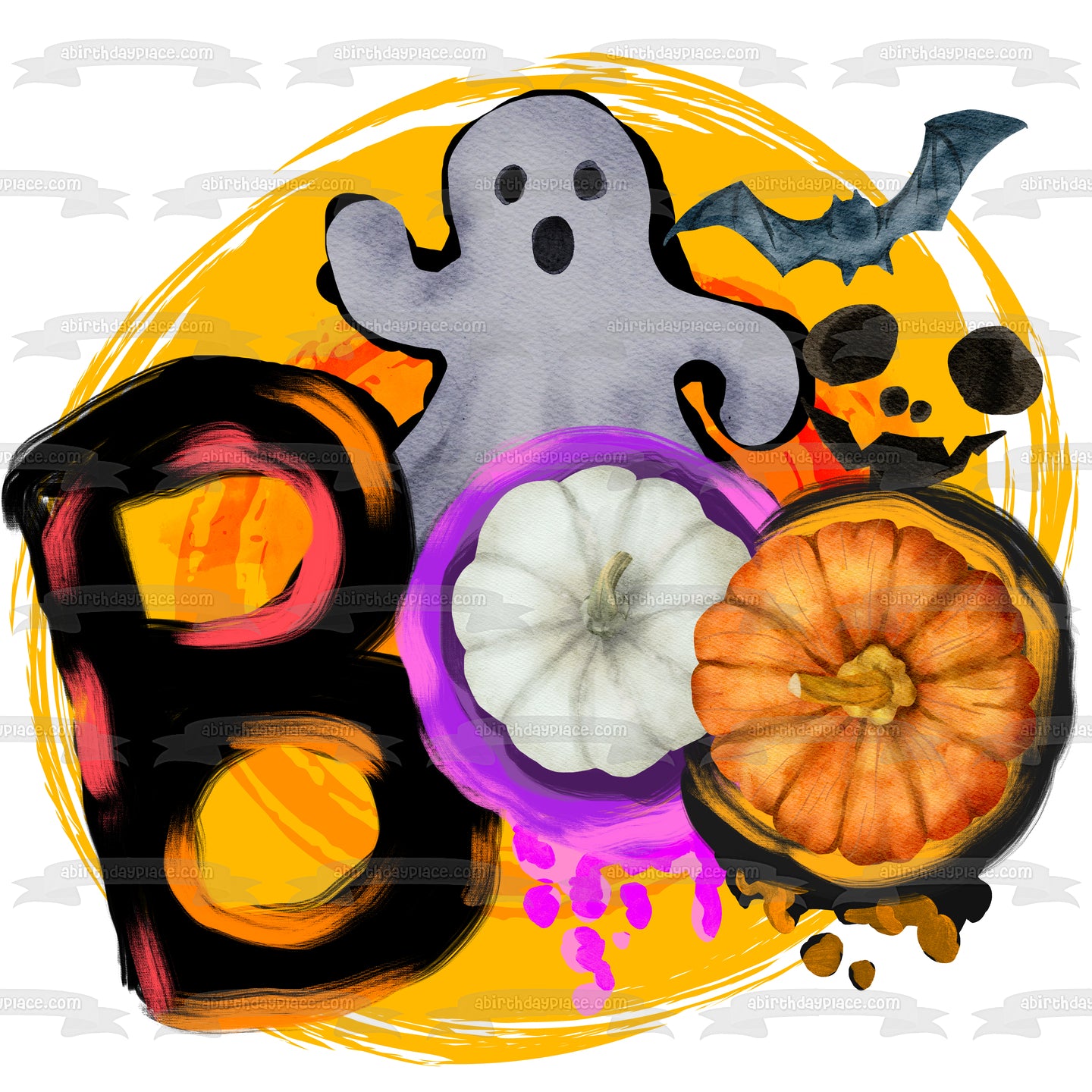 Boo Halloween Ghost Pumpkins and Bats Edible Cake Topper Image ABPID56572