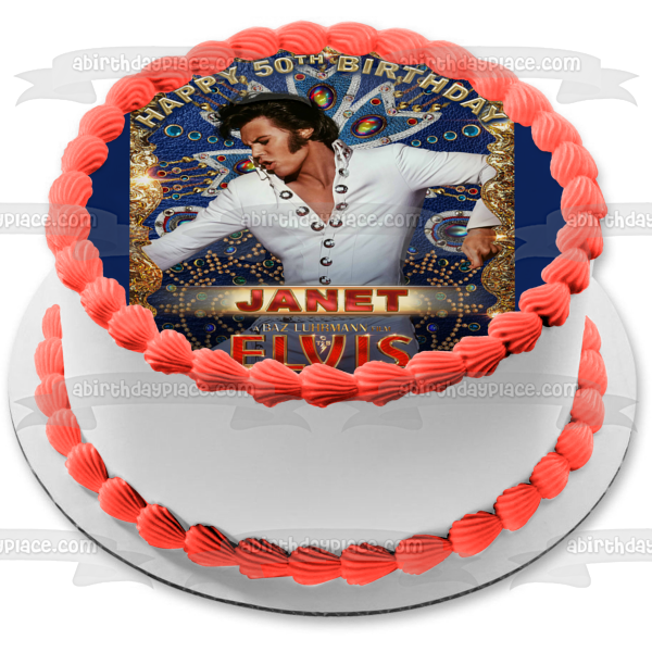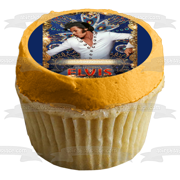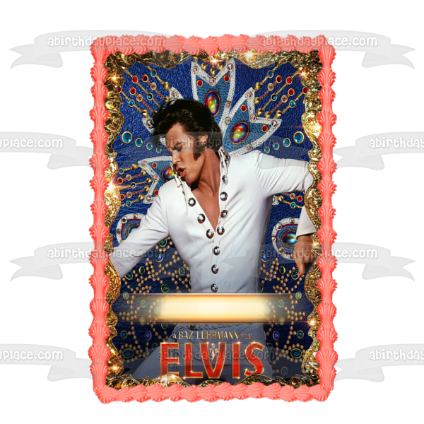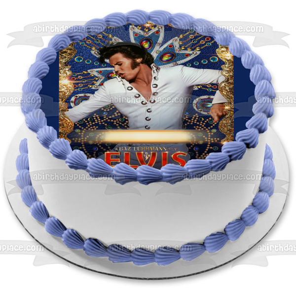 Decorate your Cake with this Elvis Movie 2022 themed Edible Cake Topper Image featuring an Air Guitar Poster!