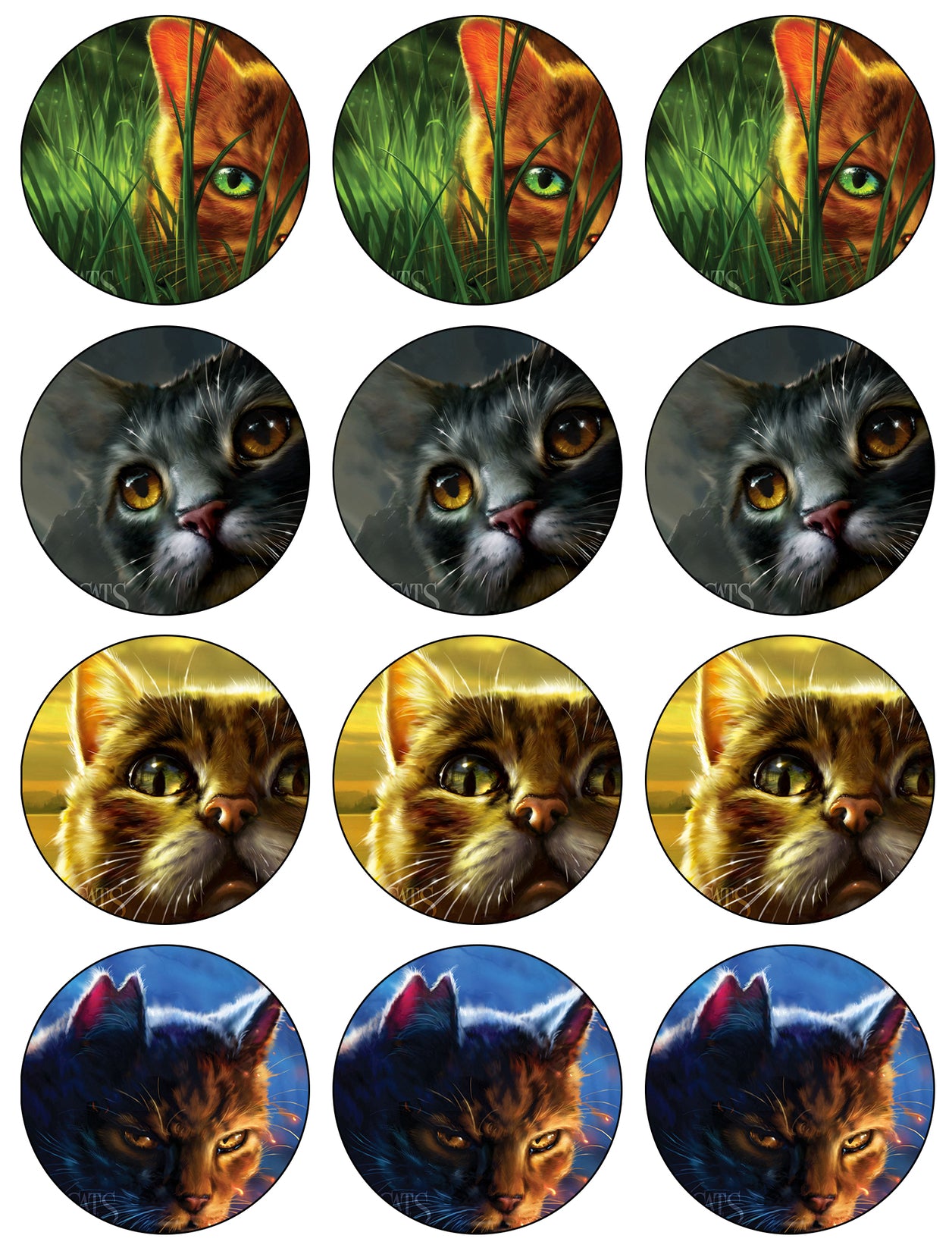 Decorate your Cupcakes with these 12 Count Warrior Cats themed Edible Cake Topper Image featuring Firestar, Moonrise, Twilight and Tiger Star!