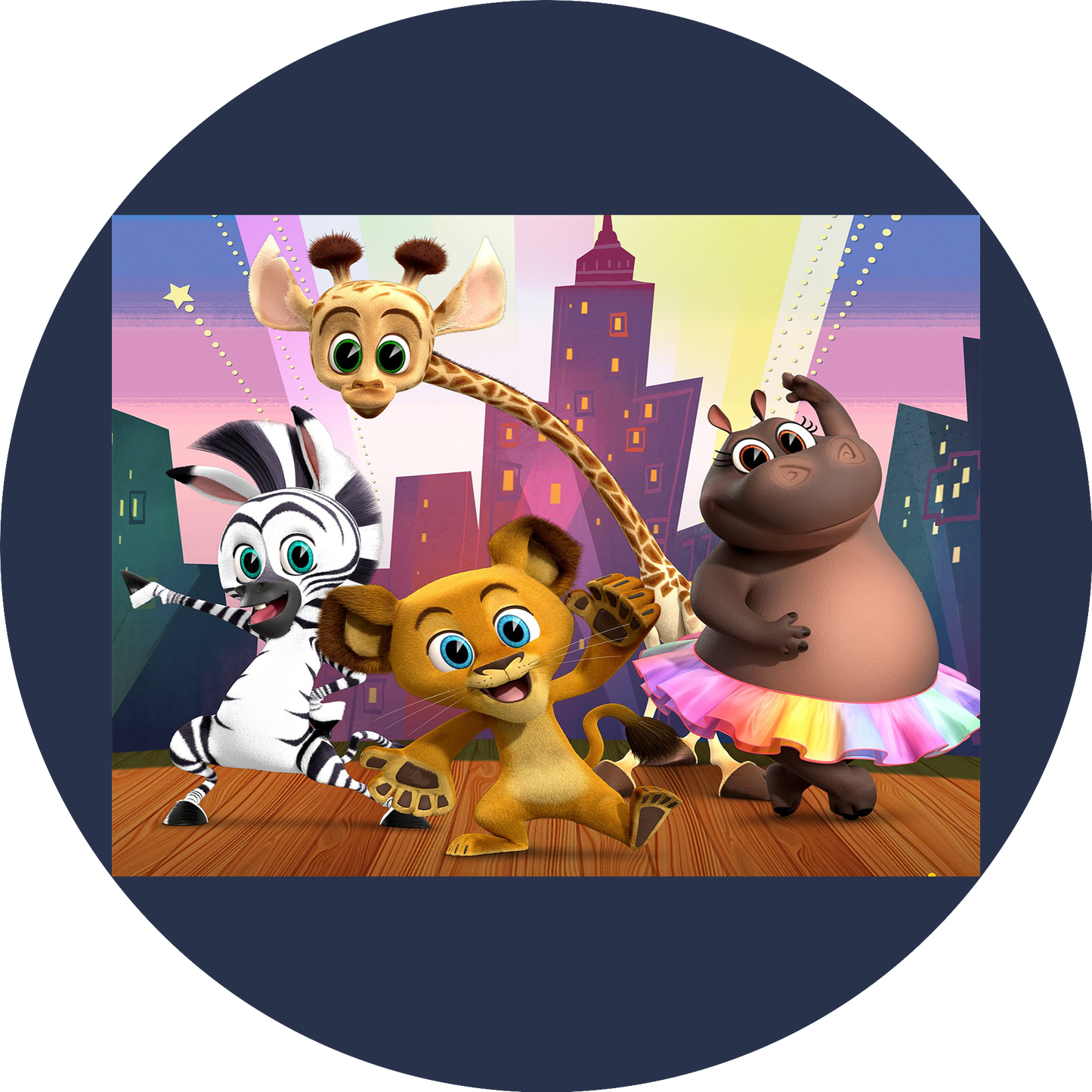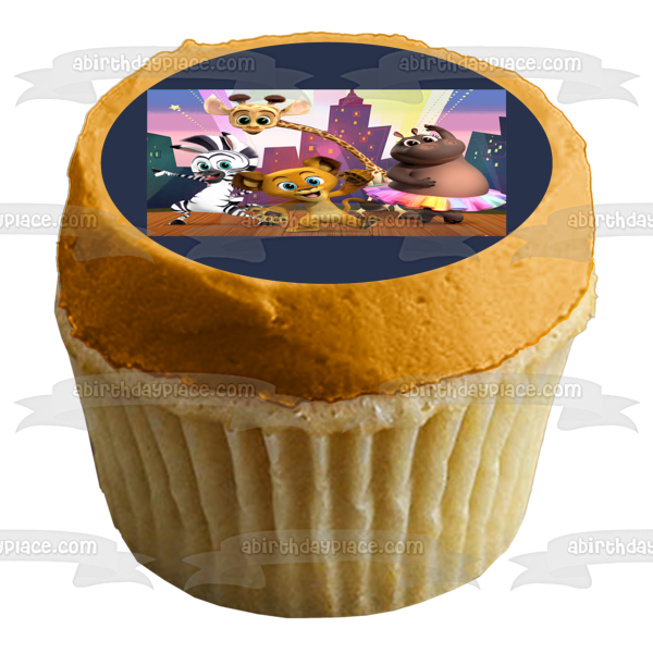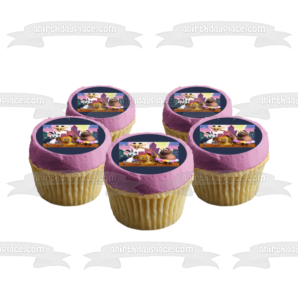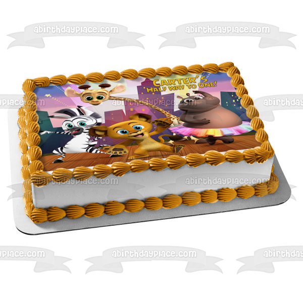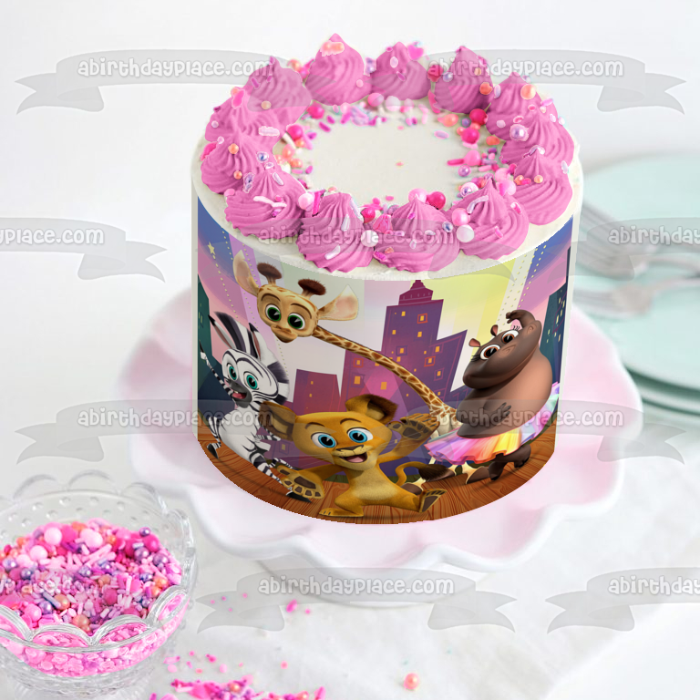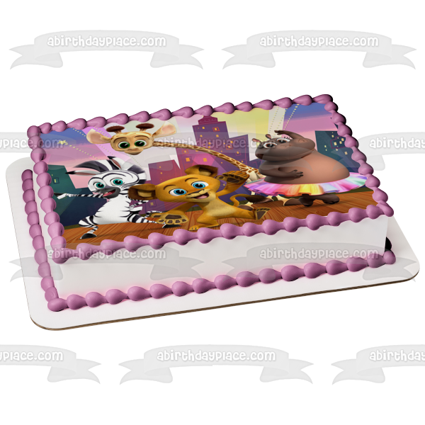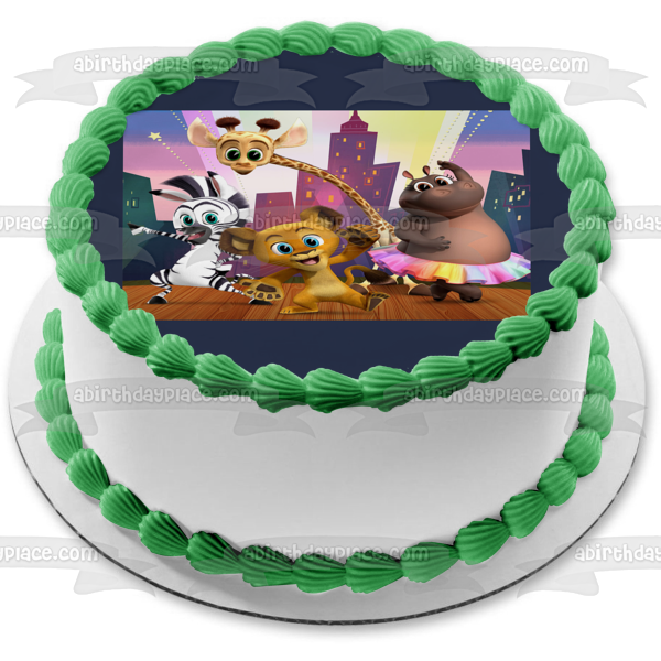 Decorate your Cake with this Madagascar a Little Wild themed Edible Cake Topper Image featuring Melman, Gloria, Alex and Morty!