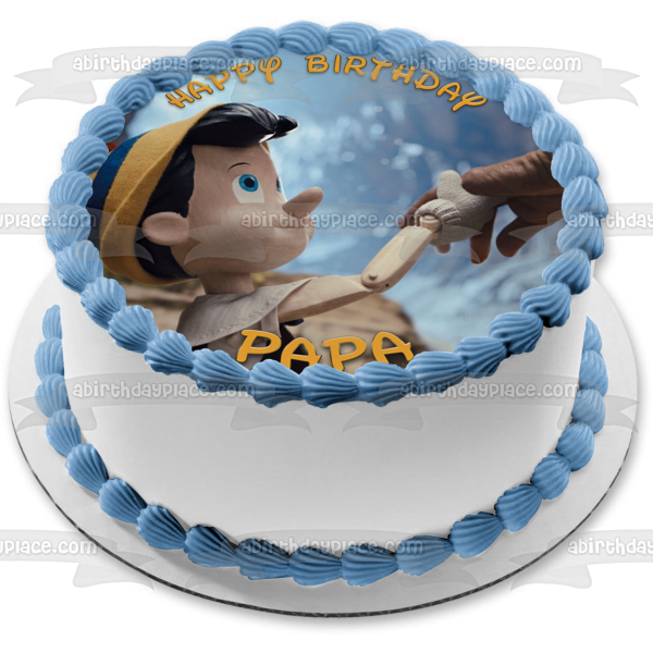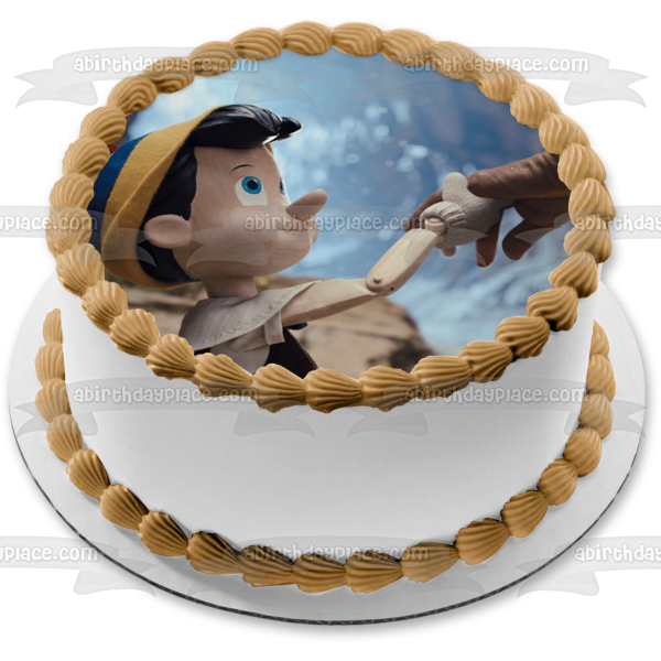 Decorate your Cake with this Pinocchio themed Edible Cake Topper Image featuring him and Geppetto Hand in Hand!