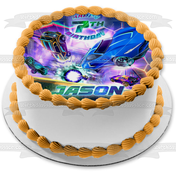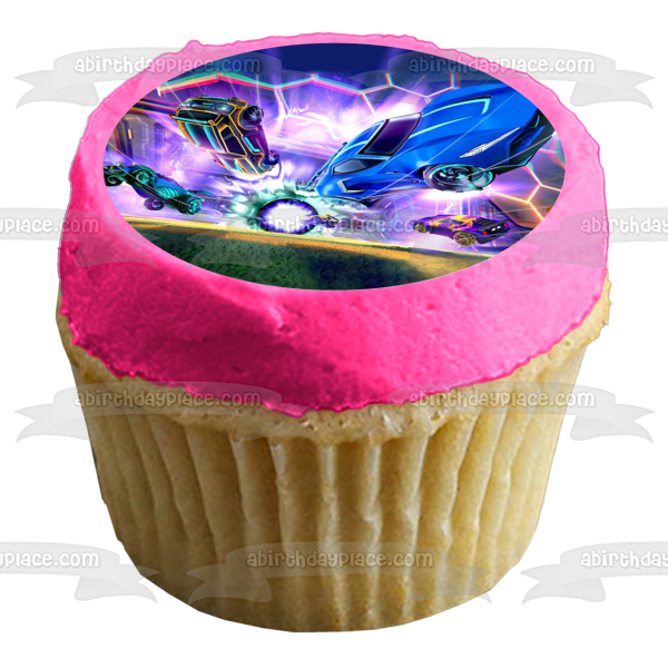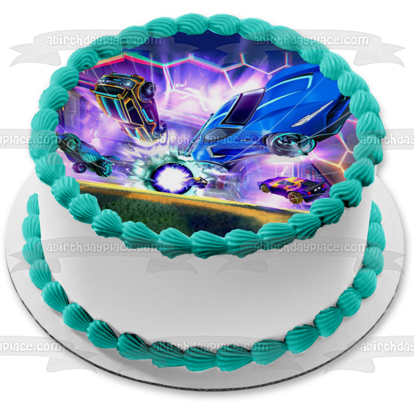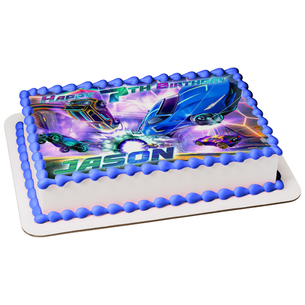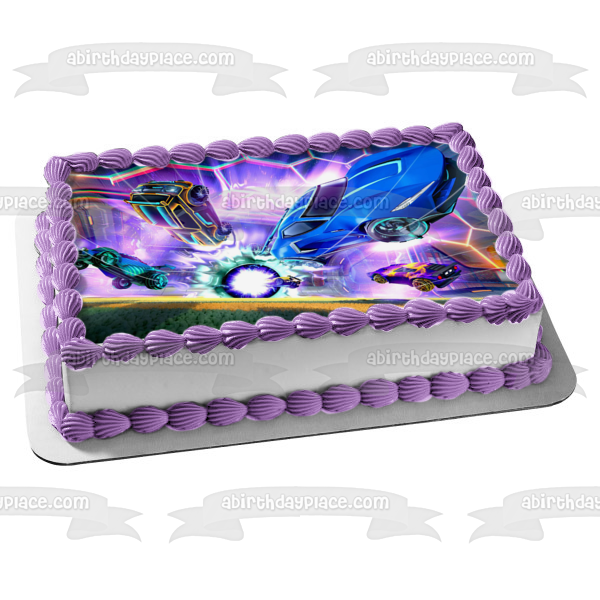 Decorate your Cake with this Rocket League themed Edible Cake Topper Image featuring Time to Play Soccer!