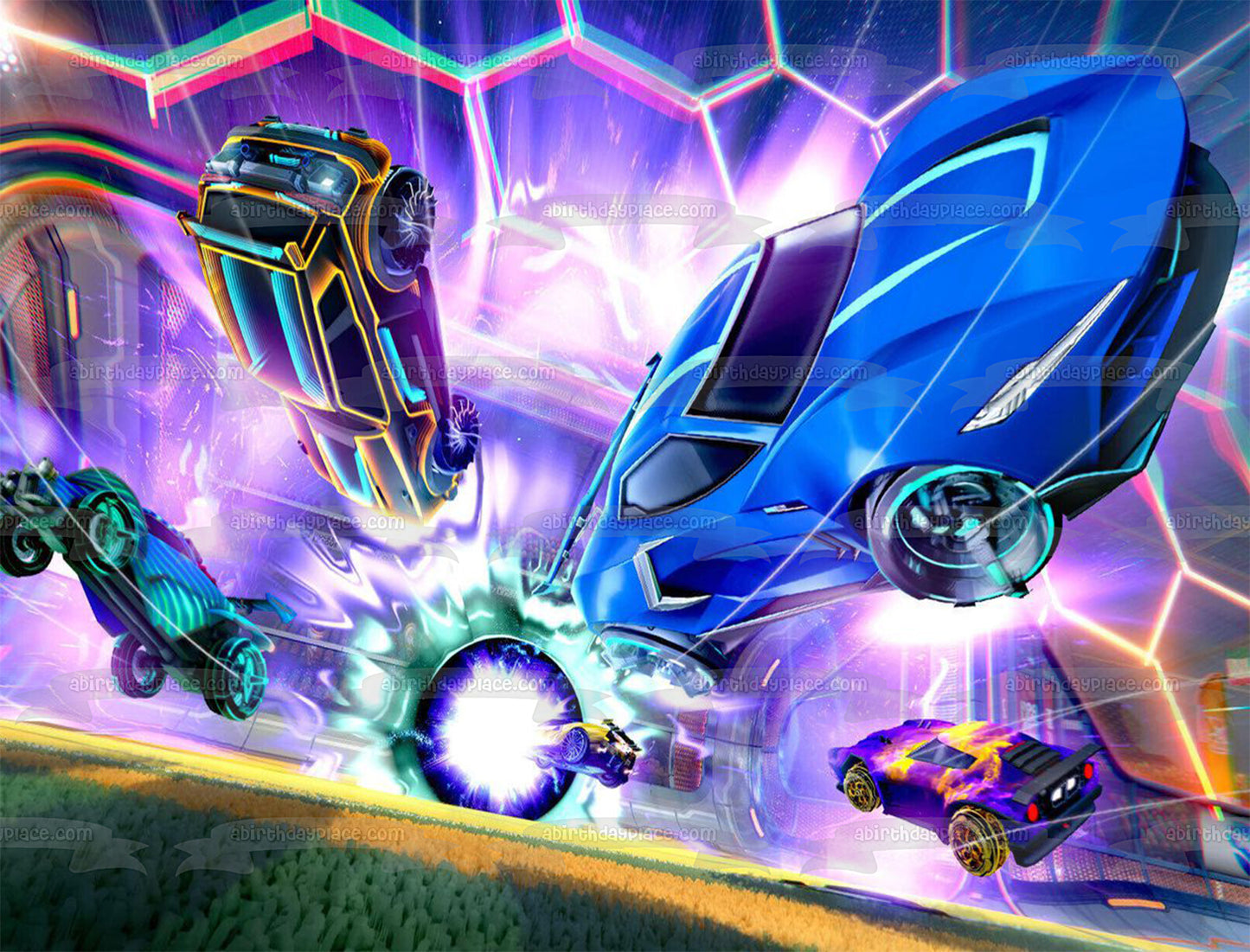 Rocket League Time to Play Soccer Edible Cake Topper Image ABPID56628