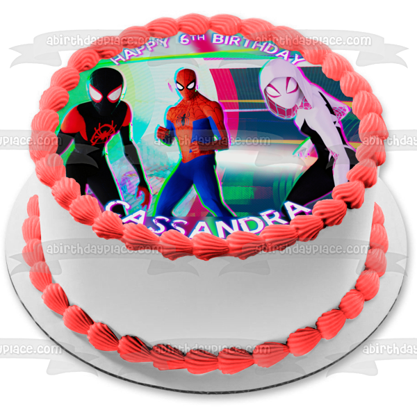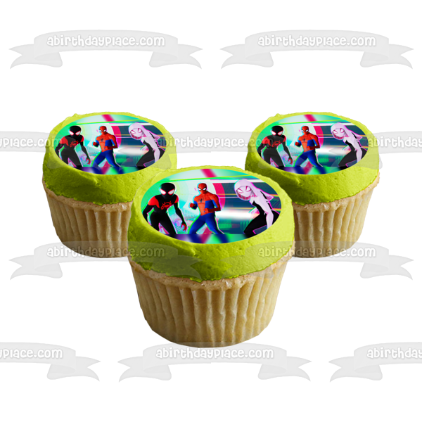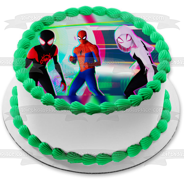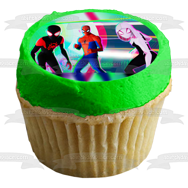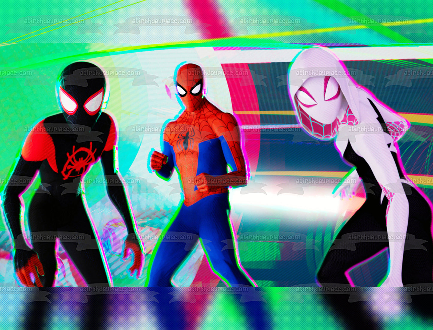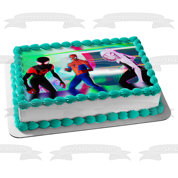 Decorate your Cake with this Spider-Man Across the Spider-Verse themed Edible Cake Topper Image featuring Battle Ready Miles Morales and Spider-Gwen!