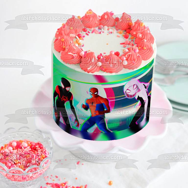 Spider-Man Across the Spider-Verse Battle Ready Halftone Pop Miles Morales Spider-Gwen Edible Cake Topper Image ABPID56634