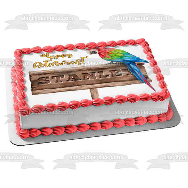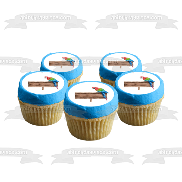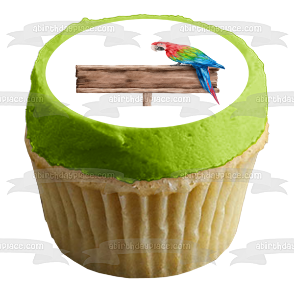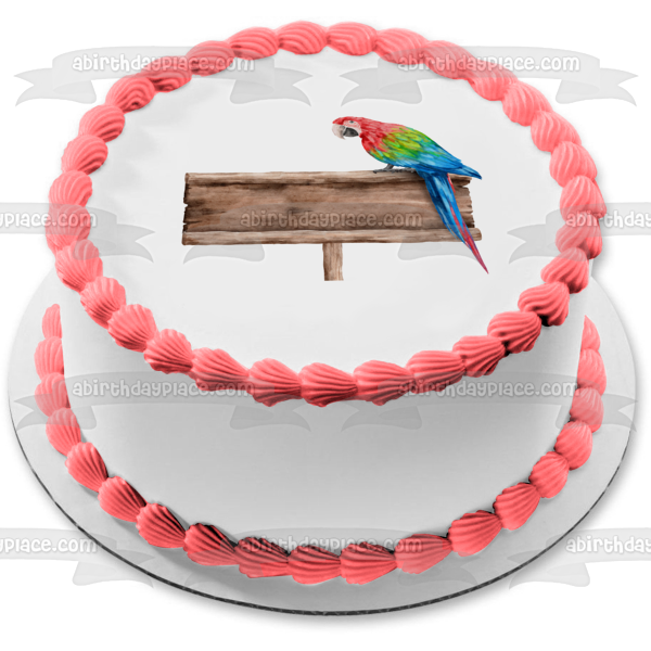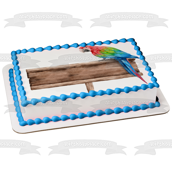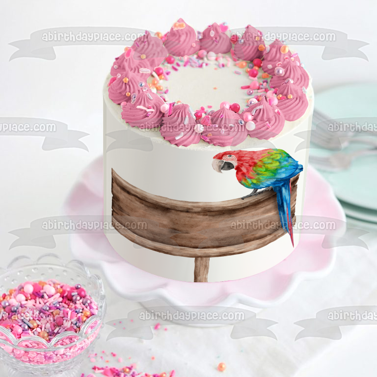Decorate your Cake with this Macaw Parrot Watercolor themed Edible Cake Topper Image featuring an Engravable Wooden Sign!