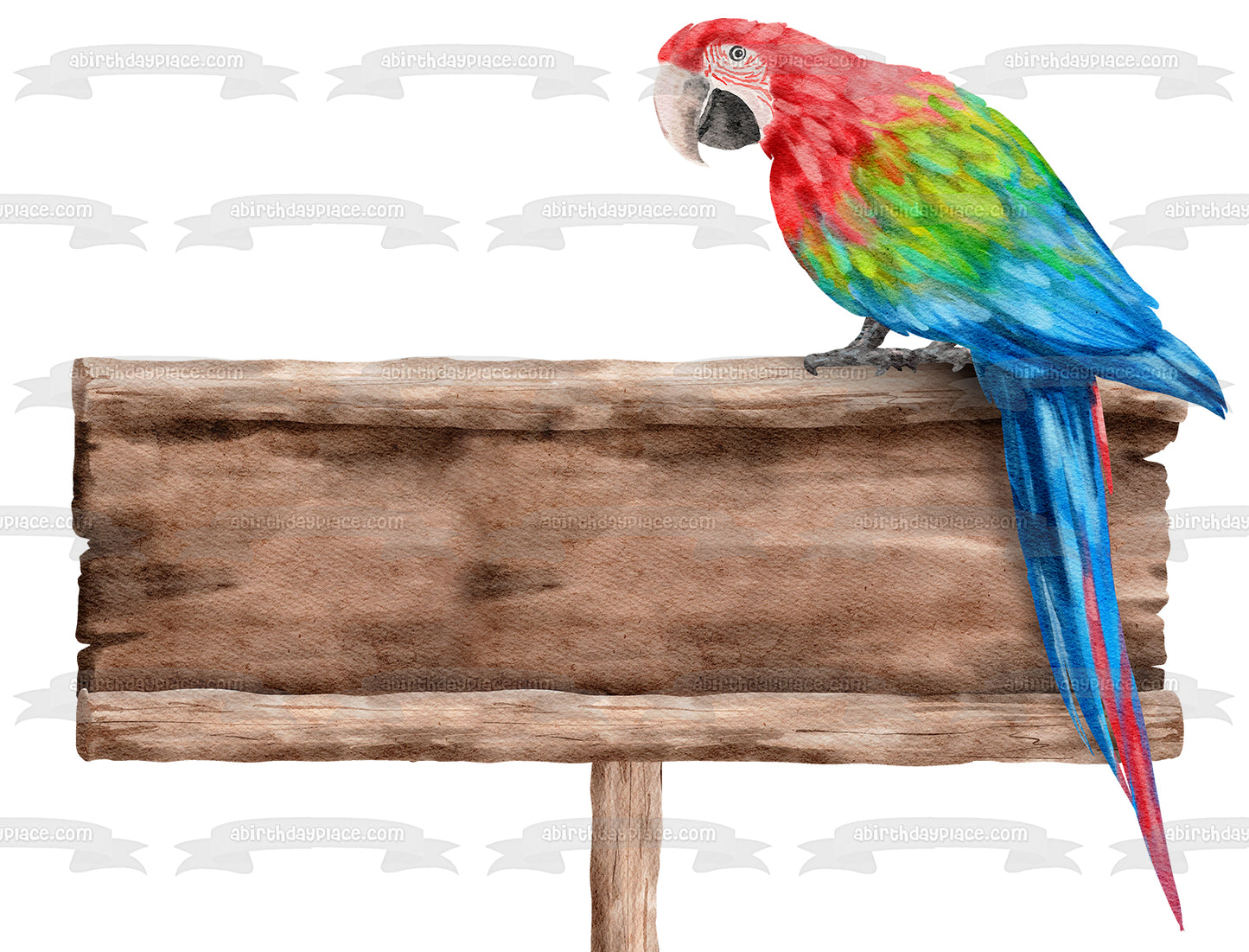 Macaw Parrot Watercolor Engravable Wooden Sign Edible Cake Topper Image ABPID56676