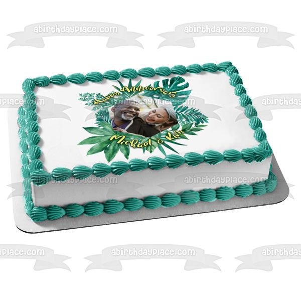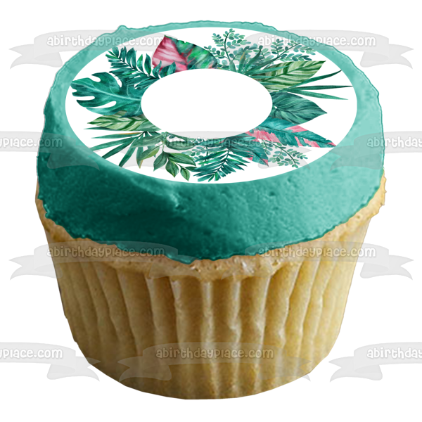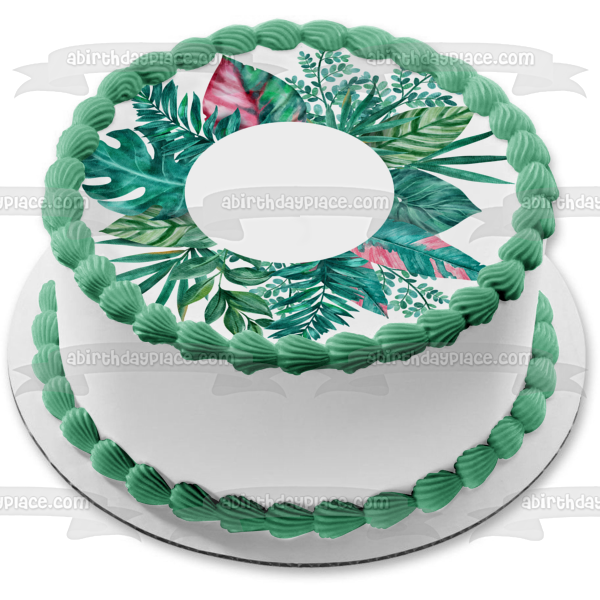 Decorate your Cake with this Tropical Spring Leaves themed Edible Cake Topper Image!